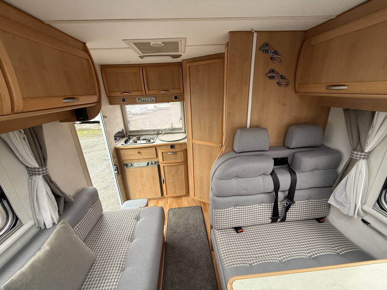 The Mc Louis Lagan 410 is a compact 5-berth, 6 belted seat motorhome based on a Fiat Ducato chassis, offering practical living space, integrated amenities, and strong value for money. compact design.