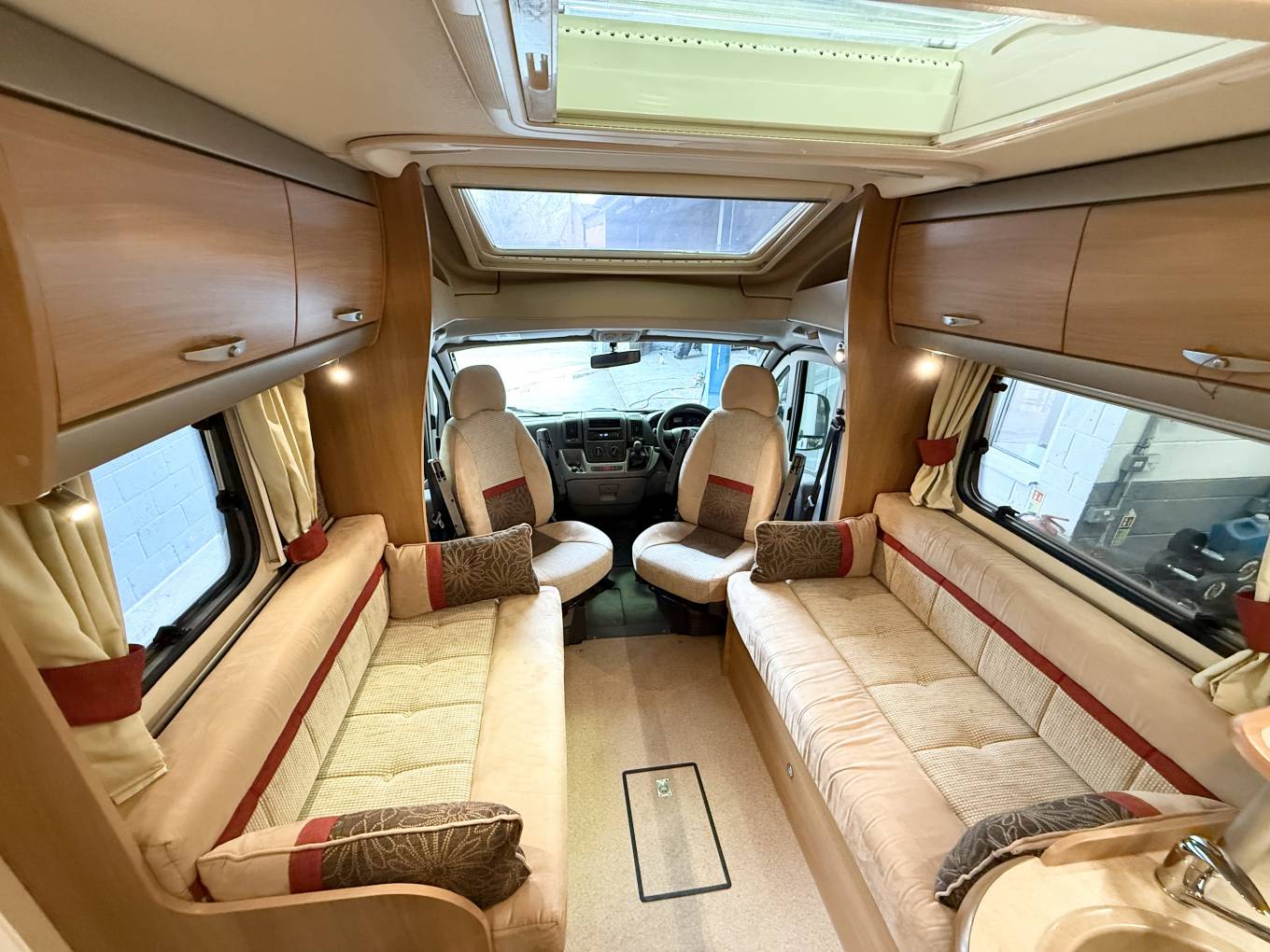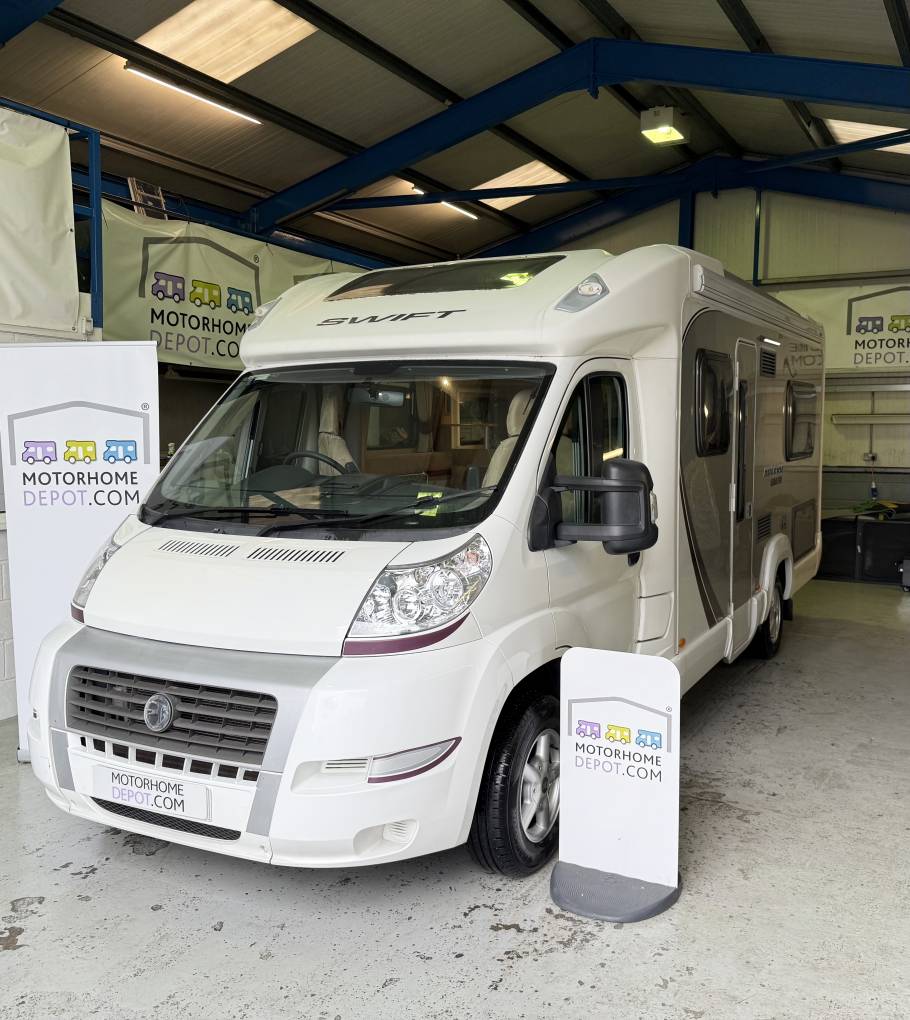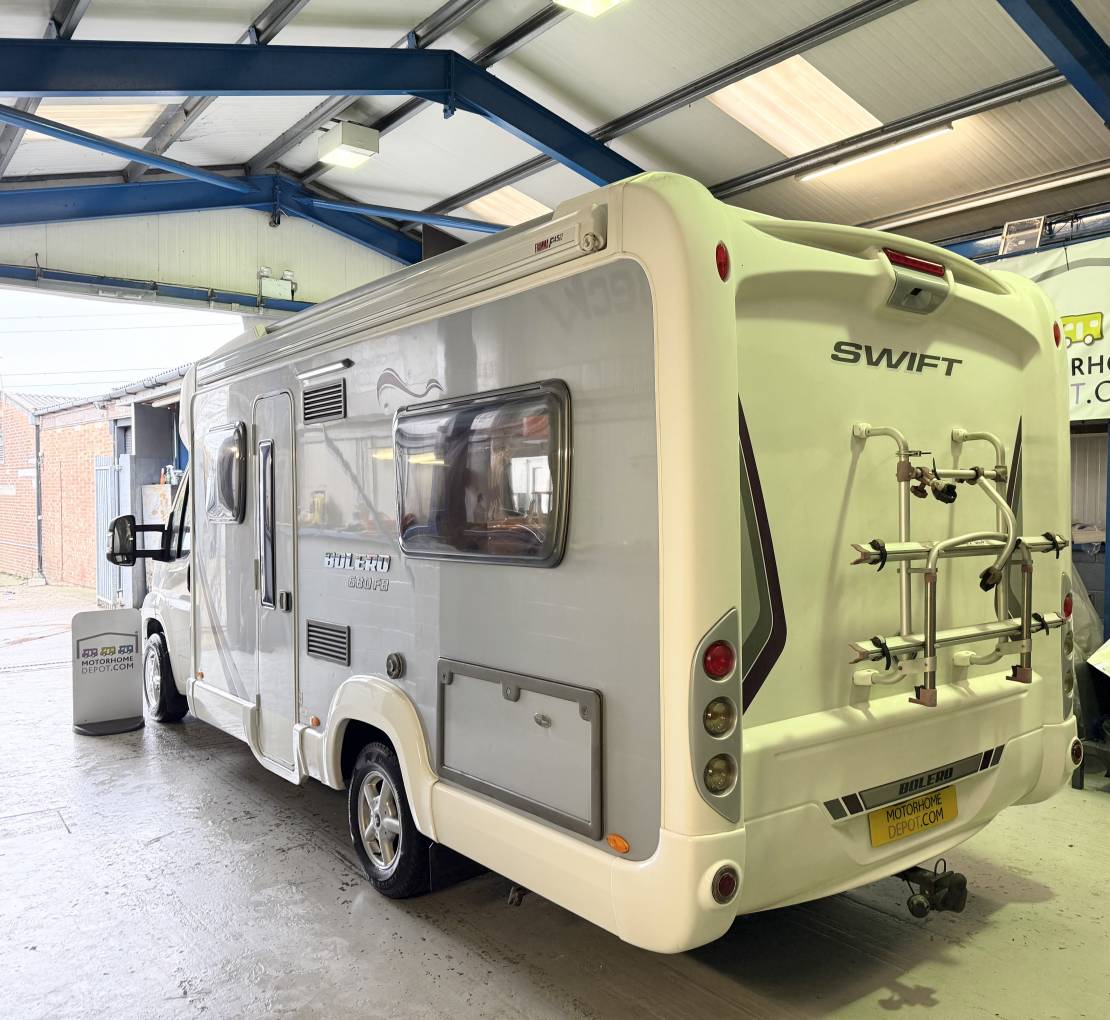 Introducing This 2012 Swift Bolero 680FB, low profile, coachbuilt motorhome is in excellent condition, It has 4 berths, with large rear bed and washroom, front lounge with 2 sofa’s, 2 seatbelts. The rear washroom is generous in size, with toilet, sink, and separate shower enclosure. There is a further storage at the rear under the bed with cupboards surrounding. The kitchen is well equipped with a cooker that has oven, grill, 3 gas burners, electric hob; microwave above and opposite is a large Dometic fridge with separate freezer above and again there is plenty of storage under the worktop. The front lounge is extensive and light, with large windows allowing plenty of natural light to enter. There are 2 bench seats, that combine to make up a double bed if required.