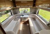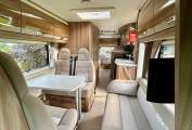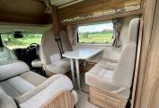The layout consists of a front lounge/dining area with a double dinette and another 2 seater sofa opposite which are nicely complemented by 2 swivelling captains seats creating a large and spacious socialising space, in the evening this area converts easily into either a small or a large double bed, above the cab area is also another double bed.