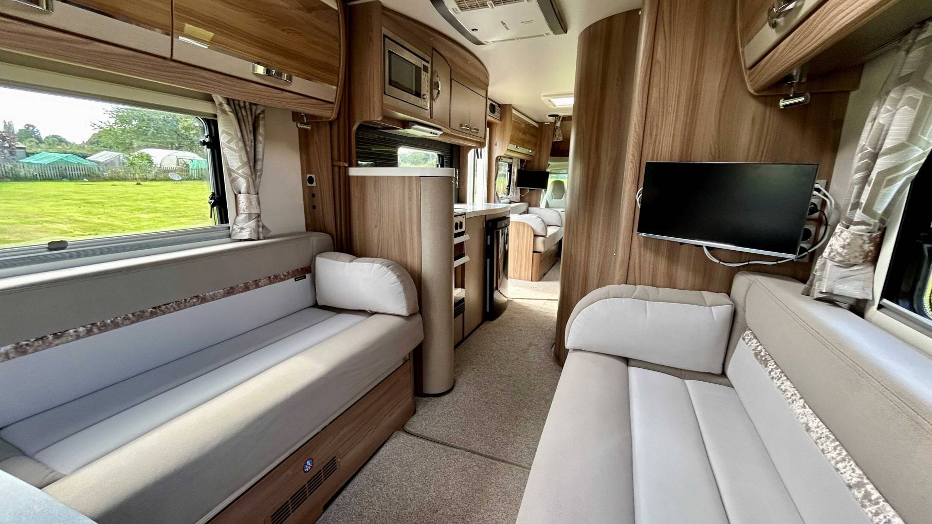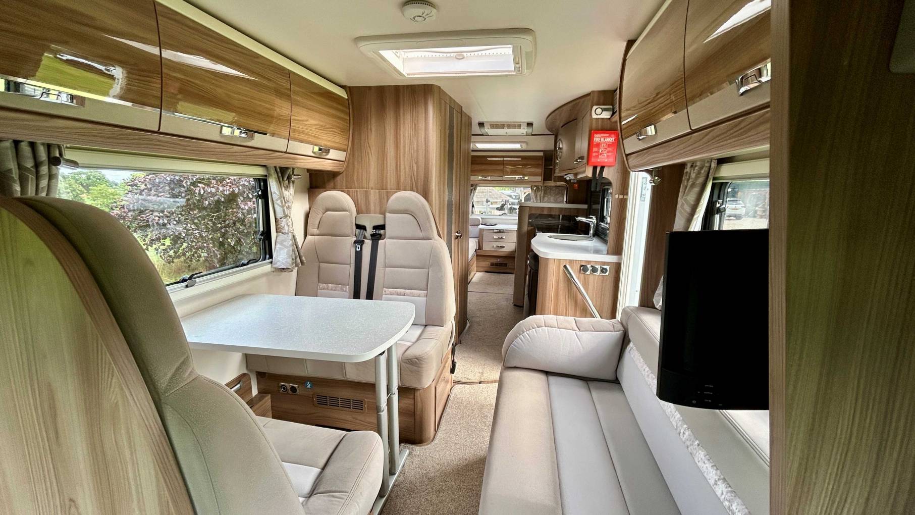 This elegant and spacious 6 Berth with 6 travelling seats and seat belts comes packed with equipment and many extras including Habitation Air-Con, Maxview Satellite System, Avtex Wi-Fi, 2 x Avtex TV’s, Scorpion Tracker, Twin Reversing Cameras, Towbar, 3 Cycle Rack, Alde Heating, Removable Carpets, 2 x Solar Panels, 2 x Leisure Batteries, 2 x Gas Bottles, External BBQ and Water Point, Wind Out Awning, Captains Swivel Seats, Remis Blinds, Alloy Wheels and Steering Wheel Controls for the DAB/Bluetooth entertainment system.
