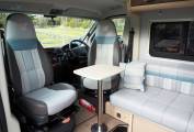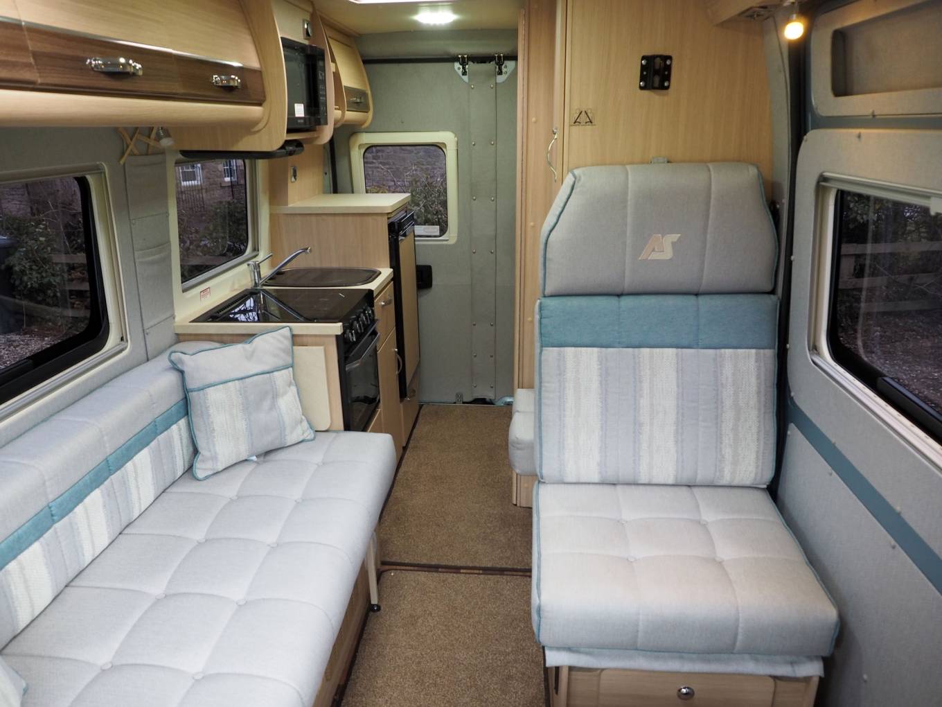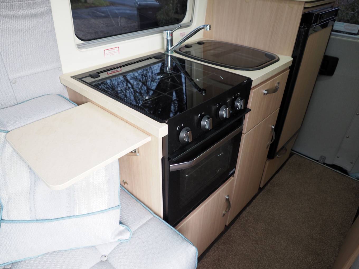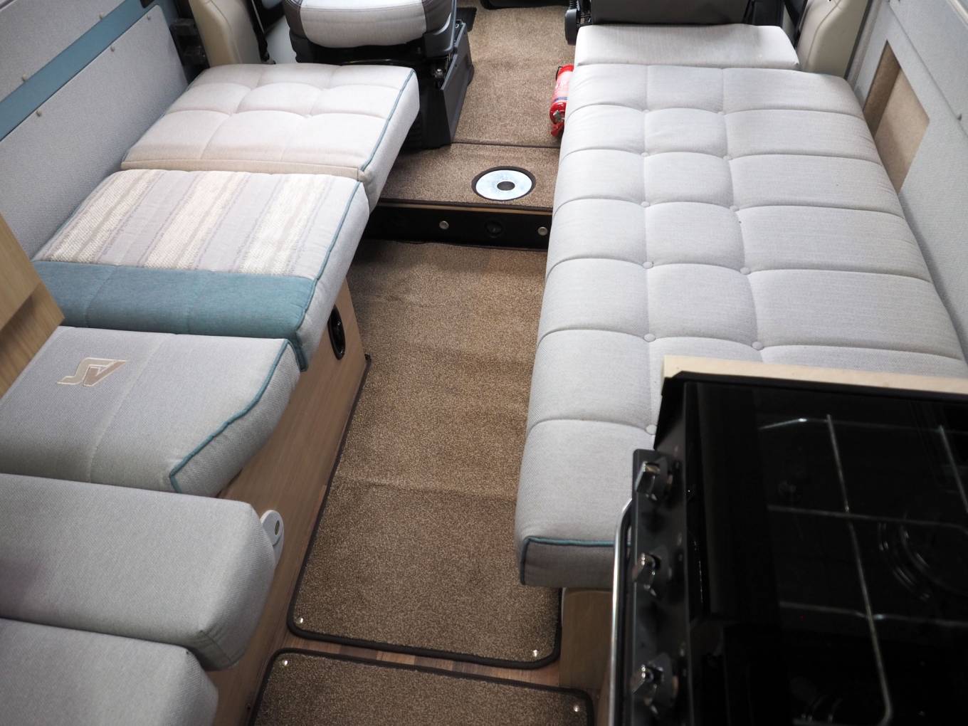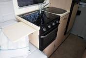 The 5.4 metre Symbol offers excellent living space and facilities in a very compact package. Once the cab seats are swivelled there is plenty of living space and there are options for twin singles or a double bed. There is a useful overcab store and further storage under the bedboxes, plus a good sized wardrobe. The kitchen is well equipped with 3 burner gas hob, gas oven and grill, extractor, microwave, fridge and two pull out worksurfaces, while the compact washroom features a tip up sink, toilet and partiallly lined shower with protective curtain.