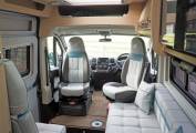 Domestic facilities include onboard domestic LPG tank, dual fuel heating and hot water, underslung fresh and waste water tanks, plenty of low energy lighting options and removable carpets. Up front the drive is easy with 160bhp available from the Peugeot Boxer with a 6 speed gearbox, offering effortless cruising with economy. Other cab features include cab air conditioning, cruise control and integrated night blinds.