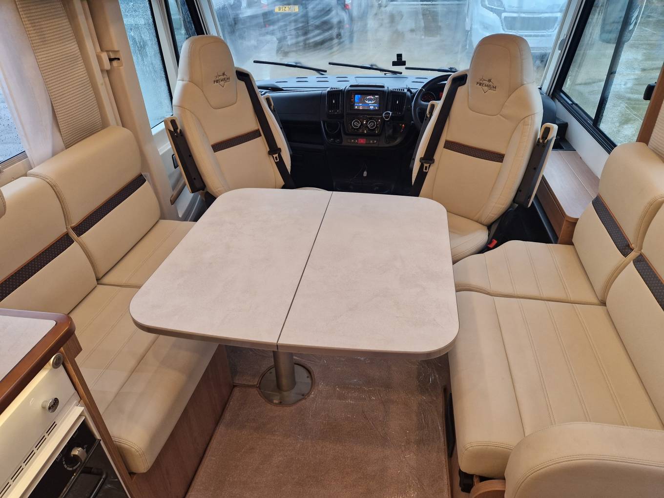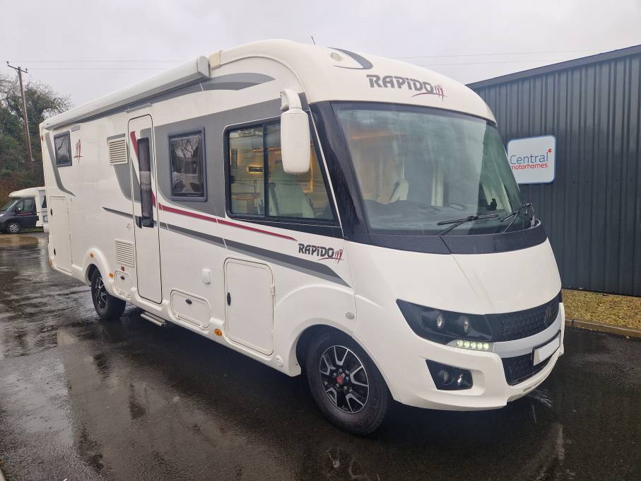 2021 Rapido 8066DF Premium Line auto luxury A Class motorhome for sale. Presented in beautiful condition with a huge specification as you would expect from this French marque. Based on a Fiat Ducato 3850kg chassis (C1 license req) with a 2300cc engine and automatic transmission and 16″ alloy wheels for an aesthetically pleasing look. The accommodation area consists of a spacious rear ensuite bedroom with twin single beds, separate shower and toilet, midship kitchen area with large fridge freezer, front lounge area with twin swivel chairs, a double drop down bed and a large rear garage area for storage. Other features include alarm, Tv and maxview satellite system, solar panel, reverse camera, electric step, cab air conditioning, air conditioning in the bedroom, alde heating, twin gas low system, awning, external BBQ point, 4 travel seats and much more. Sale includes 1 years warranty, full habitation inspection, gas certification, mechanical inspection and MOT until March 2026. Finance and part exchange available. Please call for further details.