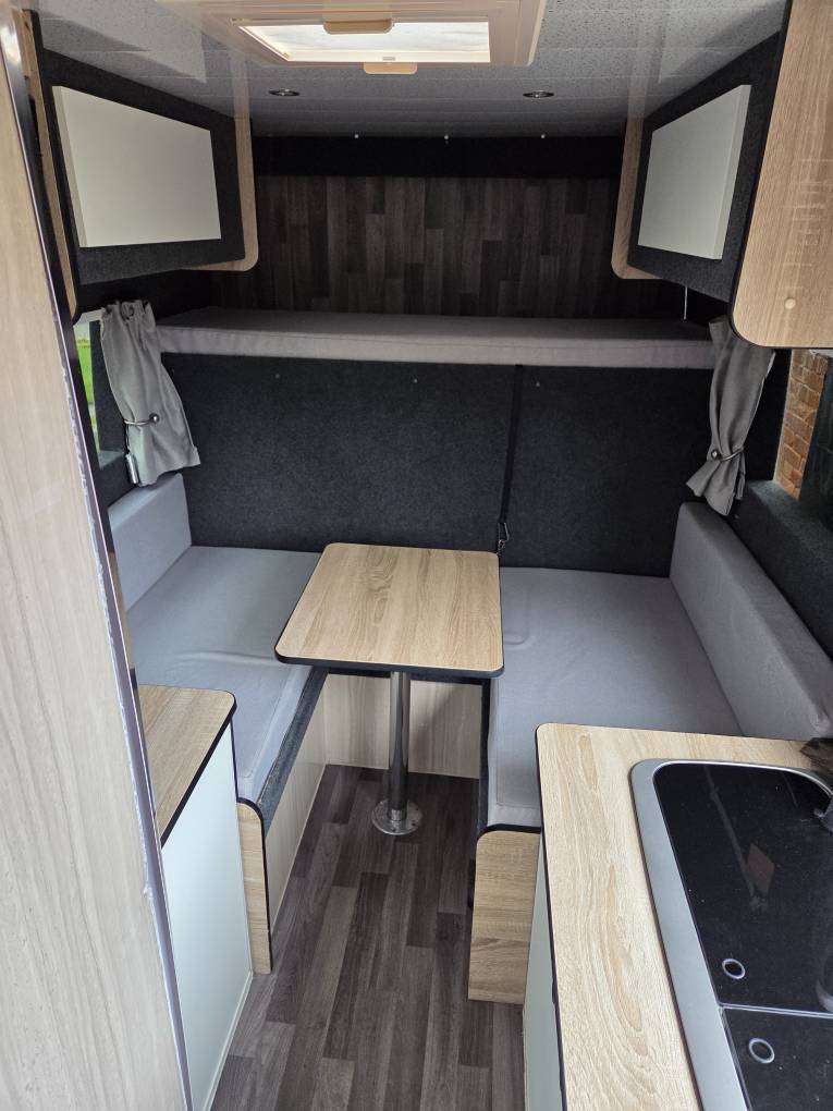 There is internal storage throughout for all necessities and a huge full width garage at the rear of the vehicle for everything you could ever need.