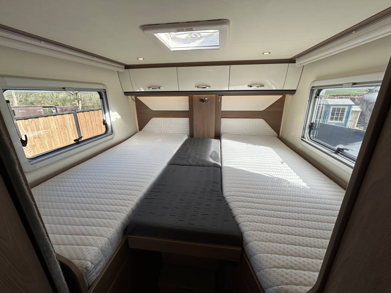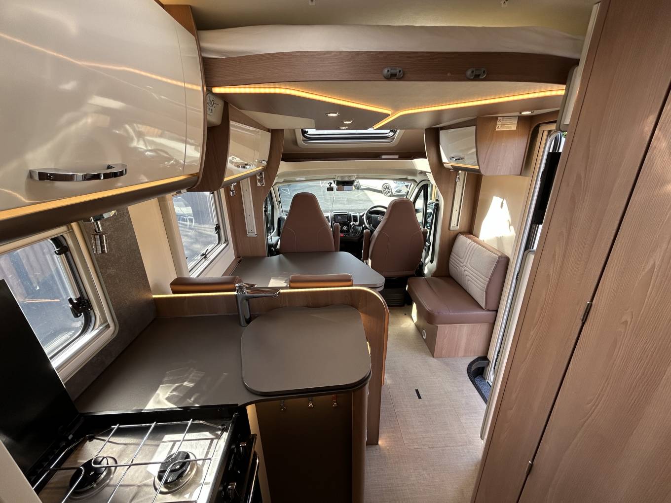 You have popular Rear Bedroom that can be used as a huge double or 2 single beds, double drop down bed over the centre dinette area and a large garage space, all of which really does help this motorhome feel like a home away from home and comes with stunning lighting and upholstery.
