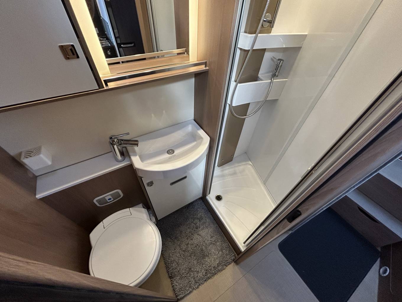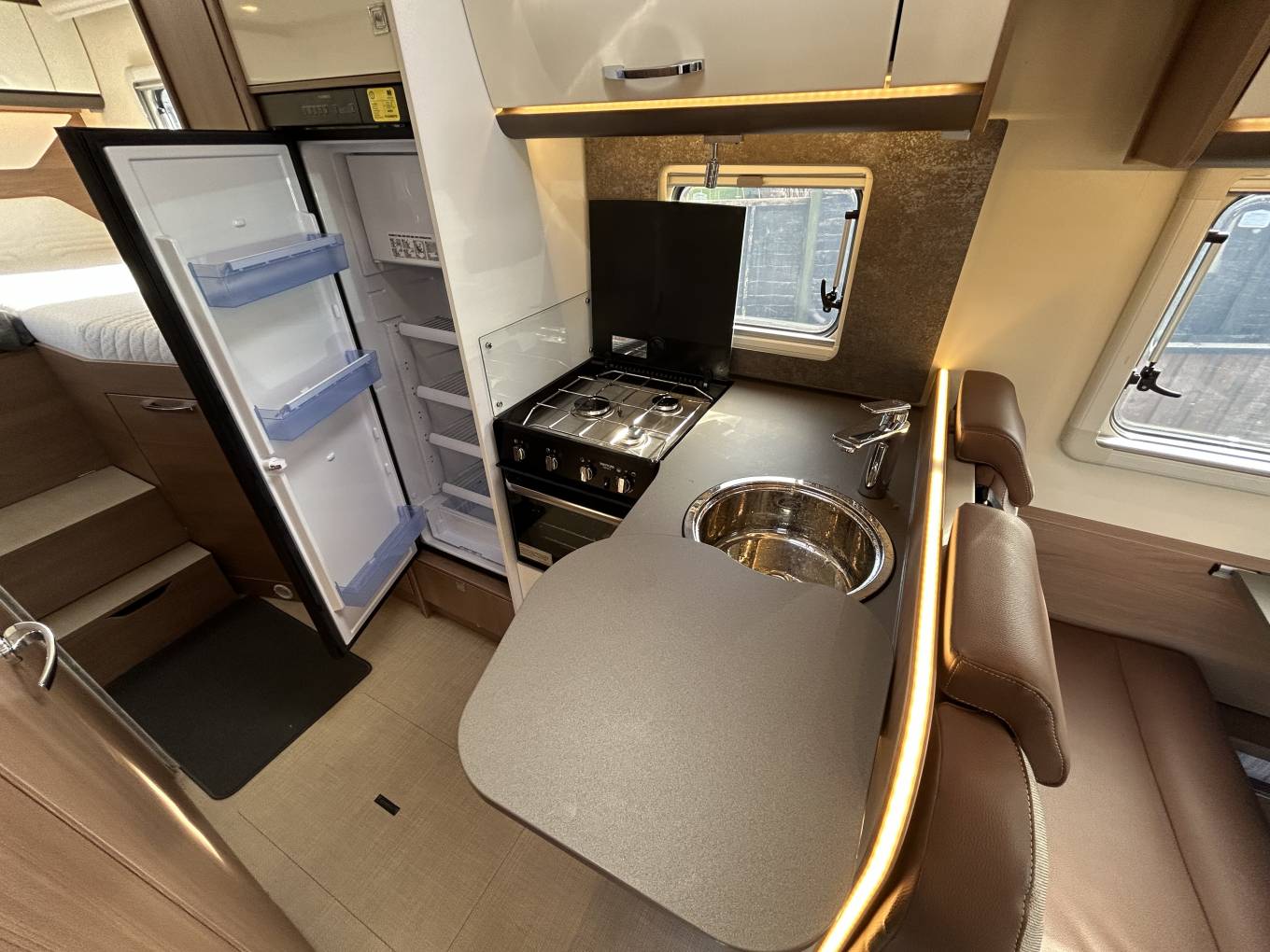 Layout - The end bedroom boasts the luxury large double bed which can also be used as two large single beds and comes with storage lockers. This area can be shut off from the rest of the motorhome if desired. The washroom is next and comes with the desired separate shower cubicle. The kitchen area which is across from the habitation door to allow extra ventilation comes with 3 Gas Hobs, Hot and Cold Mixer Tap, Oven/Grill Combi, and a Large Modern Fridge with Freezer Space.