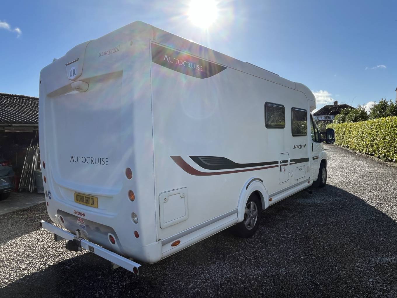 Autocruise Startrail Luxury Motorhome with Fixed Rear Bed. This motorhome has the 3 litre engine with automatic gearbox and has one owner from new. It has been well maintained with comprehensive service history and is stored under cover. At the rear is the fixed French bed and next to this is the bathroom with separate shower compartment. In the centre is a well equipped kitchen, including large fridge freezer and fitted microwave and at the front is the lounge with two bench seats and captains seats. This motorhome is built to a high standard with a beautifully finnished interior, it comes with Cab Air Con, Cruise Control, Rear Camera, TV, Alloy Wheels, Blown Air Heating, Canopy Awning, Electric Step, Tow Bar and Solar Panel. It also comes with gas bottle, mains lead and 2 sets of keys. Available for viewing by appointment in Preston, call for more photos, videos and information.