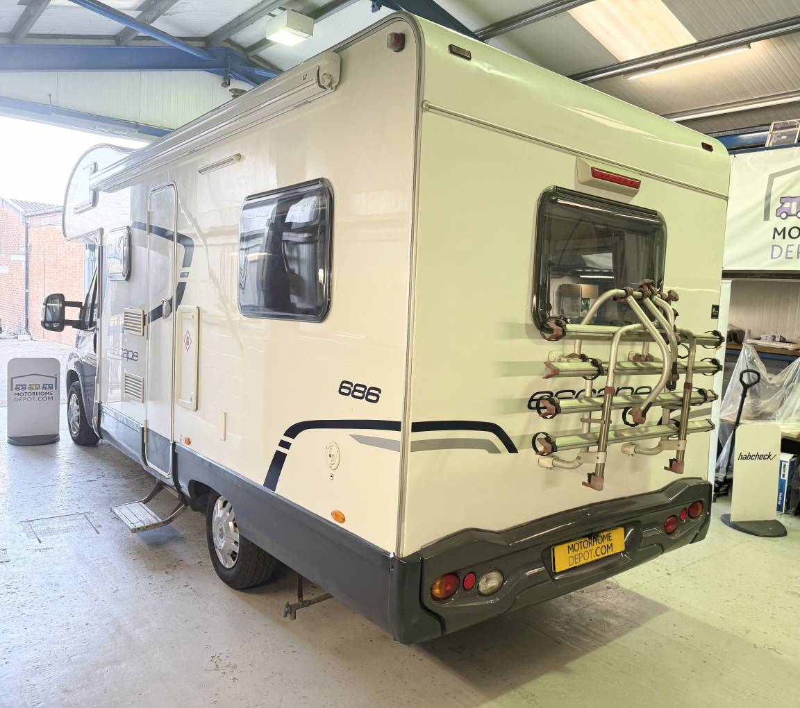 extras include wind out canopy awning, solar panel, tv aerial, reversing camera and bike rack.