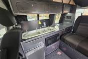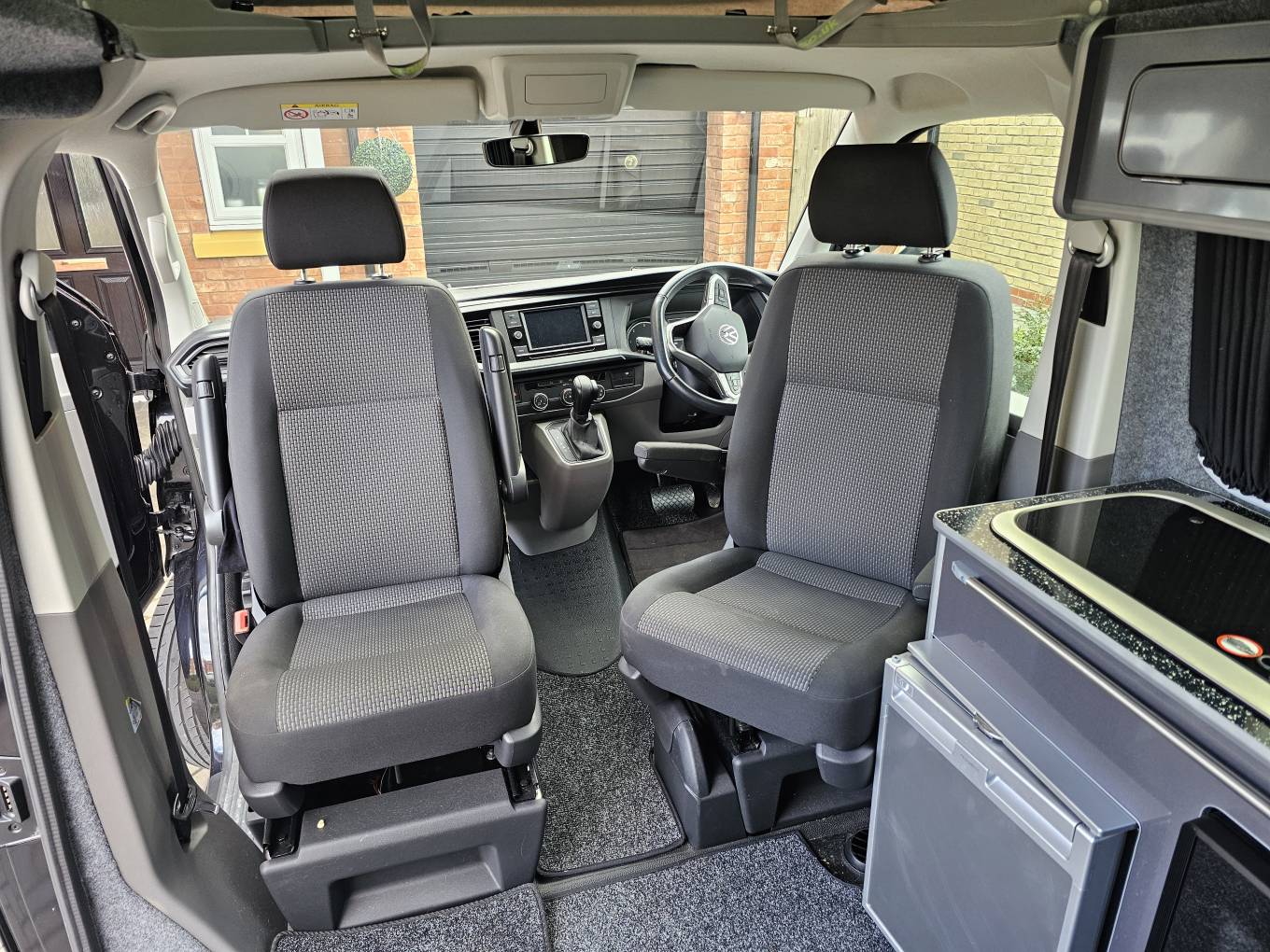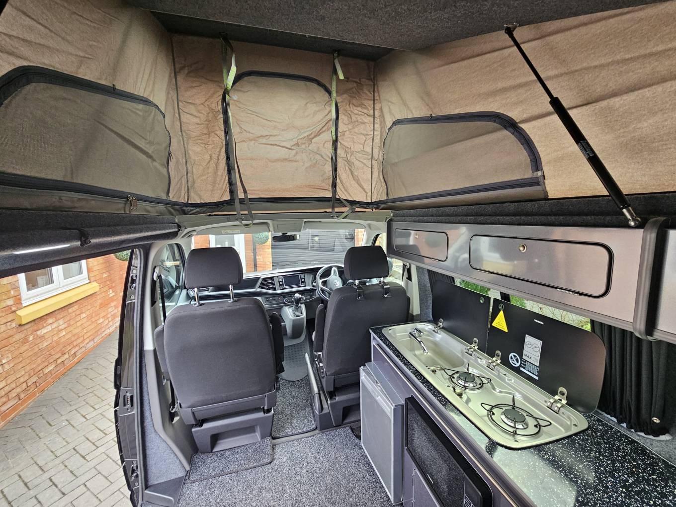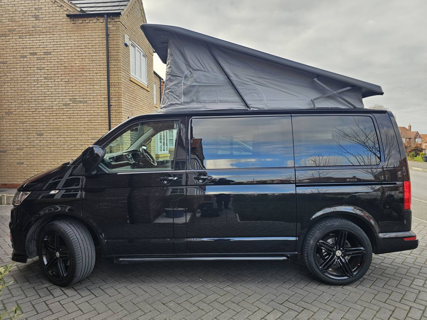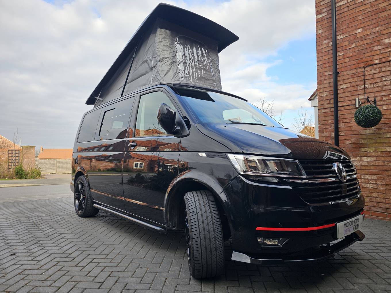 Professionally converted by Cambridge Campervans, this 72 plate VW T6.1 Highline Transporter is a stunning camper with just 18k miles. Finished in gloss black with 22" black alloy wheels, it looks sharp and modern. The 150BHP DSG automatic gearbox combined with the short wheelbase makes it smooth to drive and easy to manoeuvre.