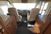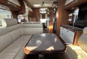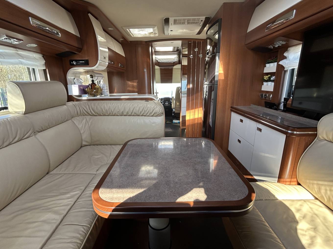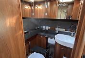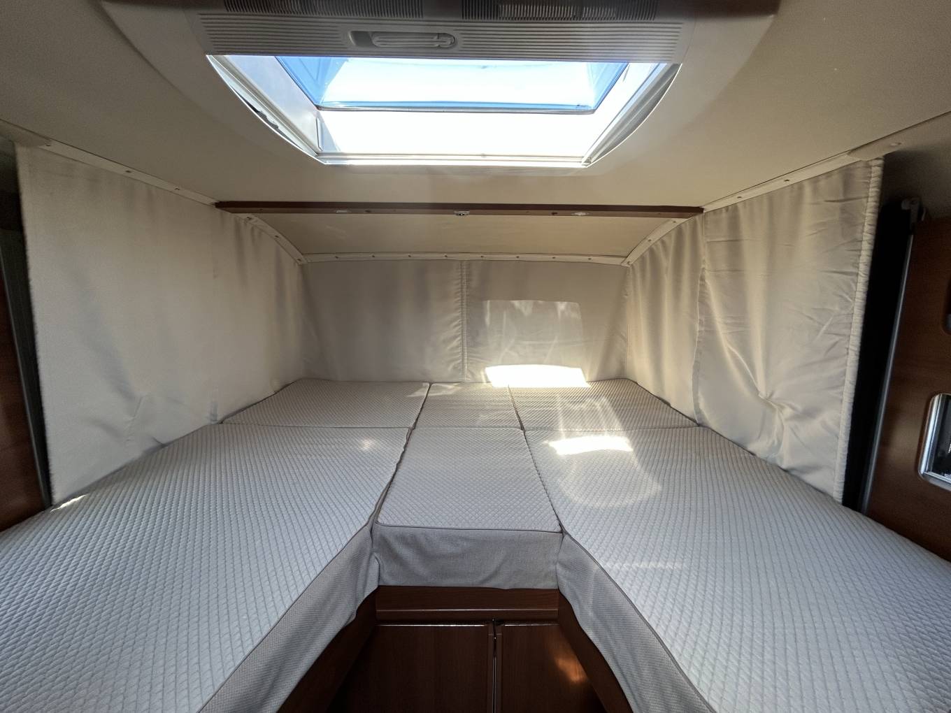 This Carthago has a beautiful rear U shape lounge complimented with a stylish dining table and elegant overhead lockers. At the press of a button a large TV emerges from behind the sofa. At bedtime the sofas and table convert into a very comfortbale kingsize bed. The other 2 sleeping berths are at the front of the motorhome. The electric drop down bed gives you the option of using it as 2 singles or as a kingsize.