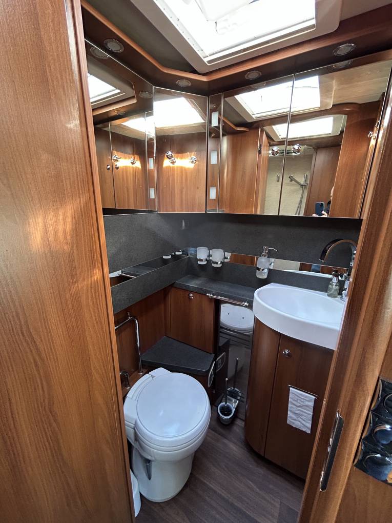 The motorhome has 2 lithium leisure batteries which are fed by the 130 watts solar panel giving you the flexibility to go wild camping for days on end. The motorhome even has a powerful 2800 watt inverter giving you mains electric to all plug sockets when you are off-grid. On board you have 2 fresh water tanks, 2 grey water tanks and a black tank as well. The toilet has the SOG system to draw away unwanted smells and there is even a function to drain your toilet cassette into the black tank to keep your cassette empty.