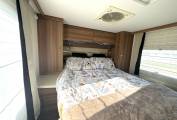 At the rear of the motorhome, the fixed island bed provides a comfortable and spacious sleeping area, complete with a memory foam mattress for a restful night's sleep. There's plenty of storage, including overhead lockers, bedside tables, and a wardrobe. A privacy door separates the bedroom from the rest of the living space, making it feel more like a home.