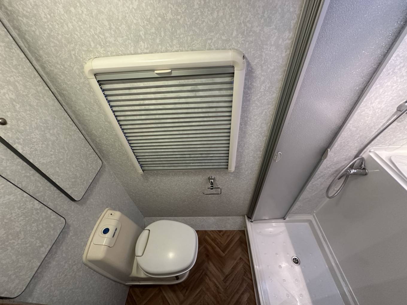 Storage is good with plenty of cupboard space. In the middle of the van is Autocruise's award winning kitchen which includes Fridge, cooker with electric hot plate and Oven and grill.There are two long bench type seats which are long enough for sleeping as a single or a large double. Diesel Heating and Hot water, The shower is separate next to the toilet which provides plenty of room for washing. The low Alko chassis provides excellent road holding with none of the typical body role with other makes. Two captain swivel seats make travelling a pleasure. Extras include 2 X Gas Bottles, BBQ Gas Point, Awning, Cab Air conditioning , Reversing sensors, Full Protection Cover and TV.