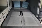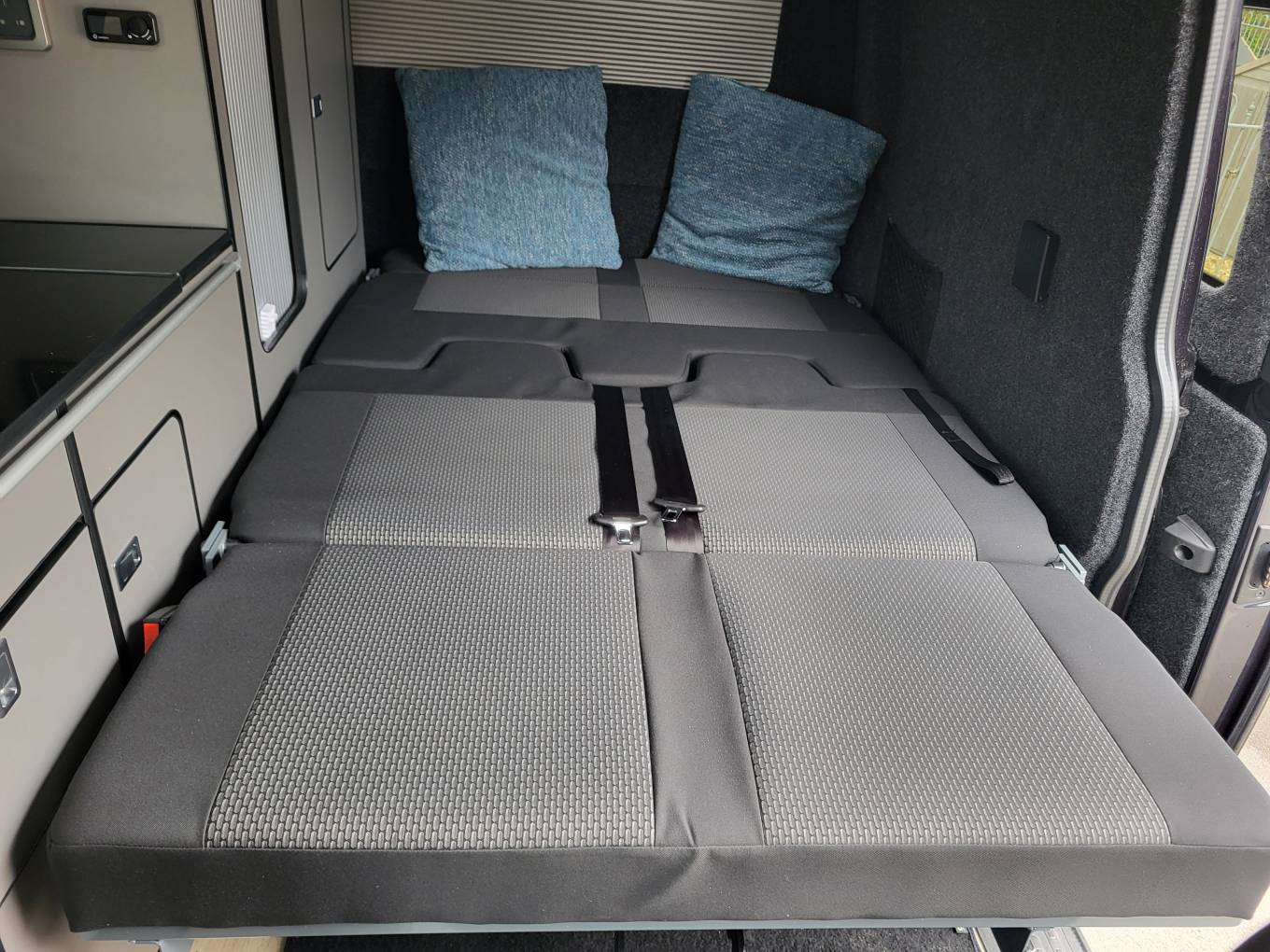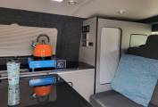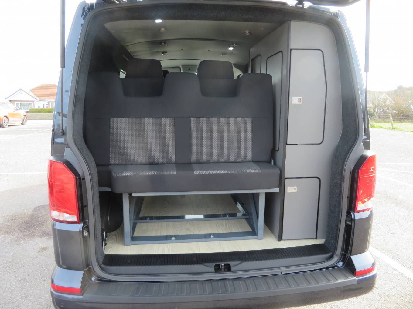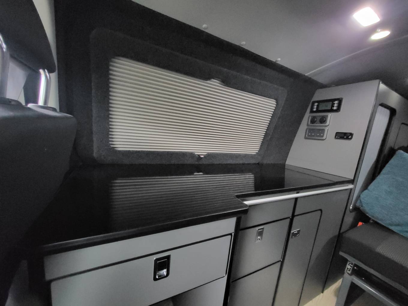 Its a unique West Coast Camper Conversion with rock and roll bed, fitted furniture with no hob or sink but this could easily be added if required, 1 x swivel Captains seat, Diesel Heating, LED spots, Window blinds and lots of storage options. This has been converted to a very high standard.