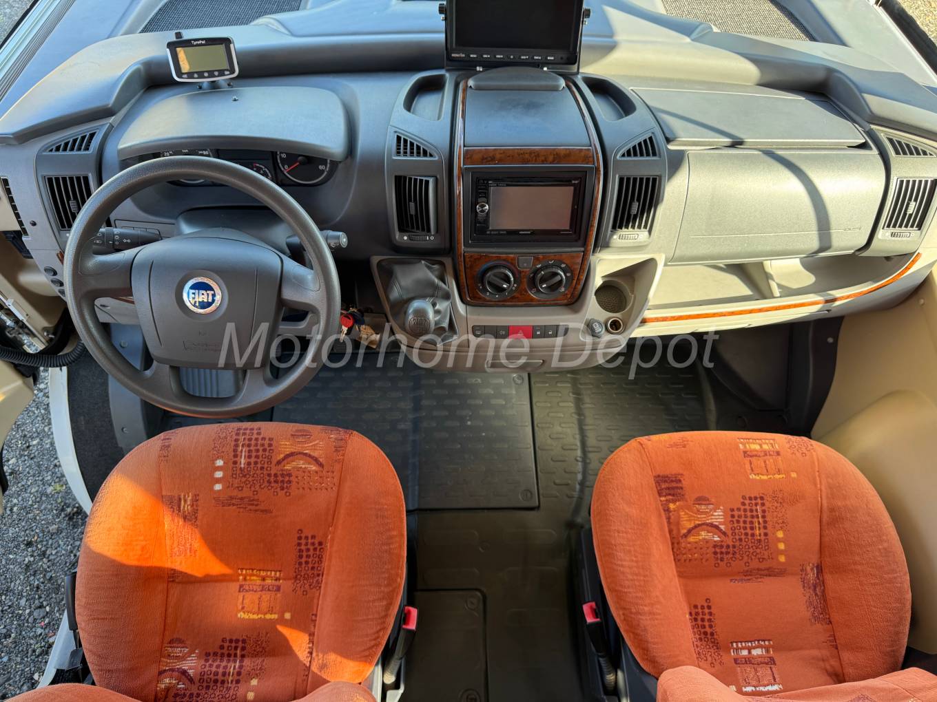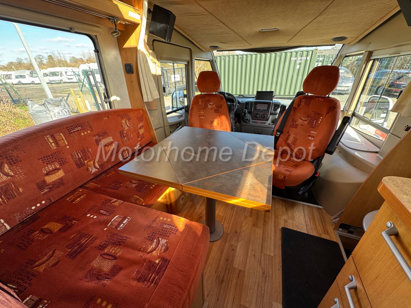 Euro Mobil’s Nobel ART Liner an A Class of a quality build with twin floor construction. Built on the ever popular Fiat Ducato chassis with the 3.0 diesel engine and the 6 speed manual gearbox. A 2 owner vehicle since its import from Germany in 2015. It has covered 73465 miles (odometer in in KM). It comes with a large file of both mechanical history and Habitation checks over the years since new. The current owner has had it since 2022 and the recent habitation checks have been carried out by Reliance in Funtington, the most recent being 11/24 when it had a mechanical service at the same time. The cab benefits from: power assisted steering; air conditioning; TyrePal; reverse camera screen with 3 views; Kenwood Double-Din multi media head unit with; single cd, DAB radio, Bluetooth phone & streaming; Goldschmitt air suspension; Truma front heating controls, electric adjustable mirrors; blinds to front & side windows.