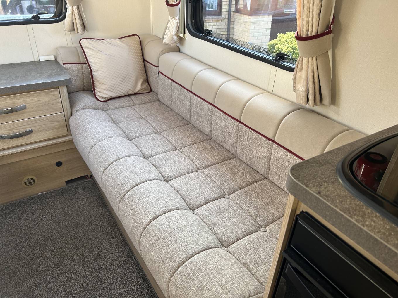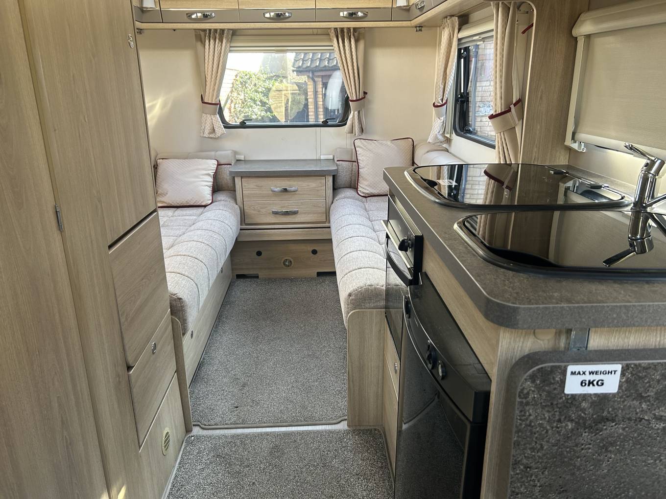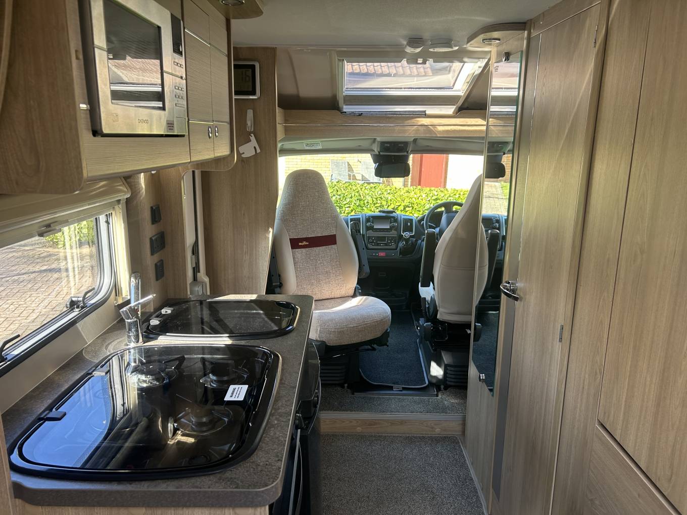 This Elddis is built on the Peugeot Boxer chassis and has an economical 2 litre engine with a 6 speed manual gearbox and 160 bhp, giving you all the power you need. The motorhome is a joy to drive and has cab air conditioning, cruise control, fully integrated touch screen console with DAB Radio/Sat Nav, Bluetooth and twin reversing cameras.