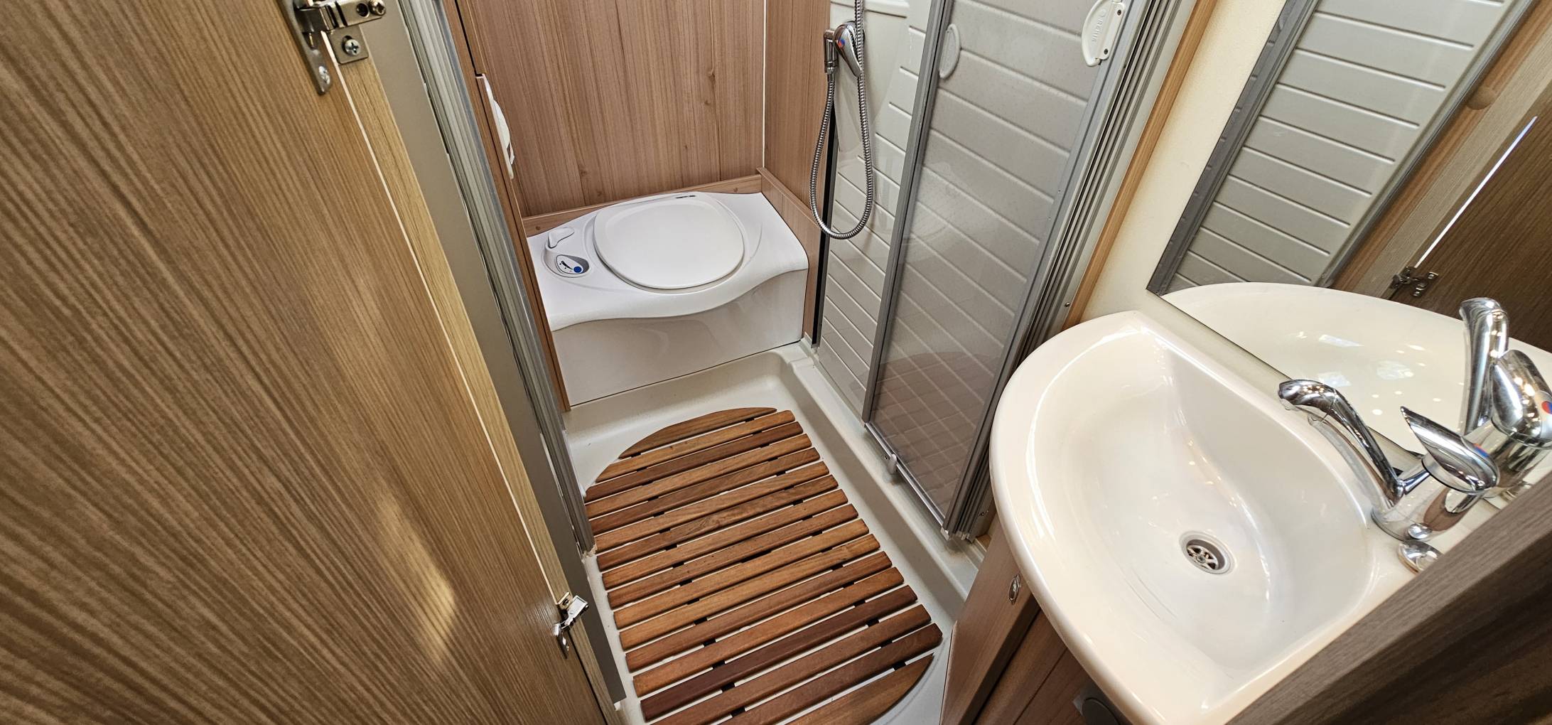 Opposite this is the good sized French bed with under storage and access from outside locker door.