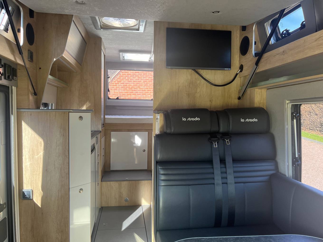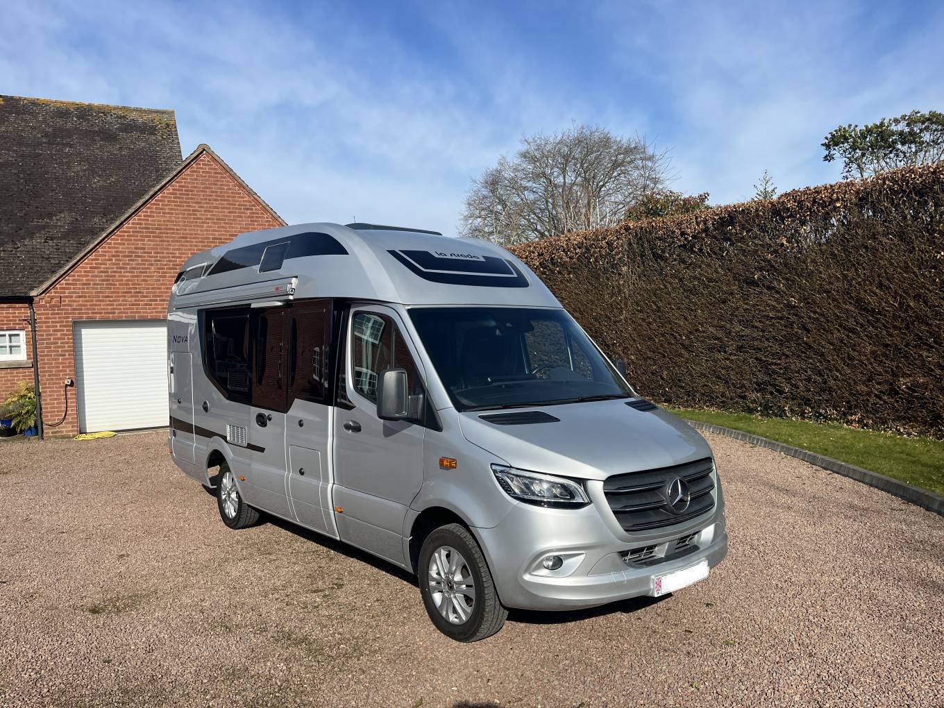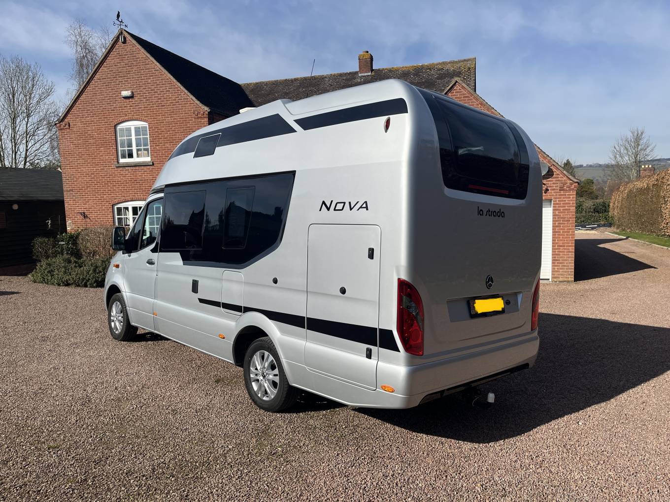 Here we have a rare opportunity to own a ONE OWNER, IMMACULATE, LOW MILEAGE LA STRADA NOVA M premium motorhome. This 4 berth 4 belted seats, LHD Mercedes Automatic is the ultimate luxury German motorhome with a host of extras including VB Rear Air Suspension, heated seats, bike rack, tow bar, 1700 watt Dometic Invertor, 140 Lithium battery, satellite system, solar panel, outside shower point, outside barbecue point and much much more.