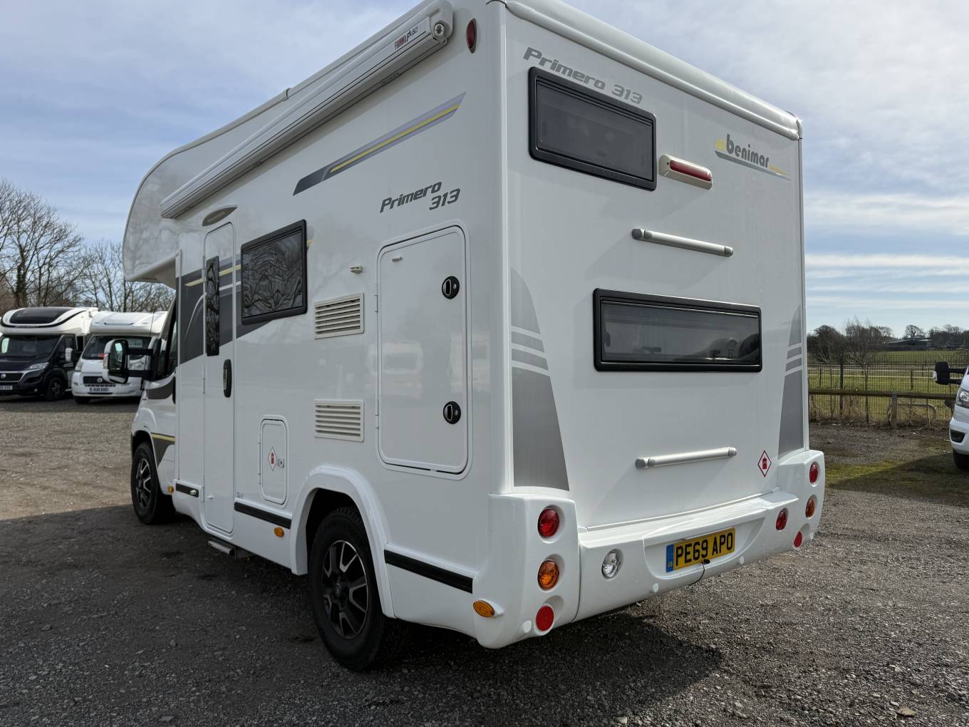 Benimar Primero 313 compact 2019 (69) plate with just 7000 miles this 6 birth, 6 belt motorhomes clever design makes this quality unit under 6 meters in length with 2 rear bunks that can be folded up and be used as a garage, the dinette makes a second double bed and the other double bed is over the front cab.