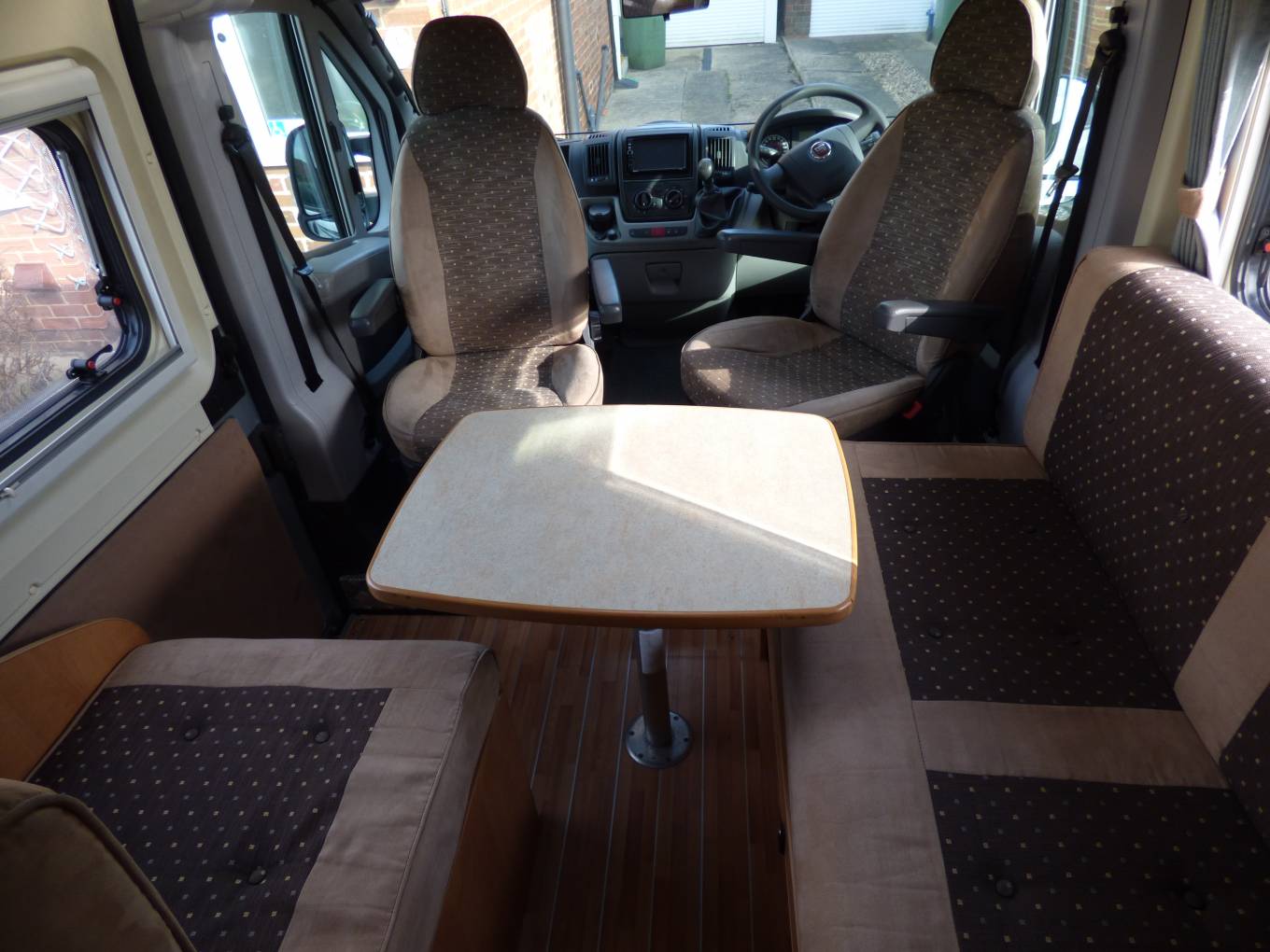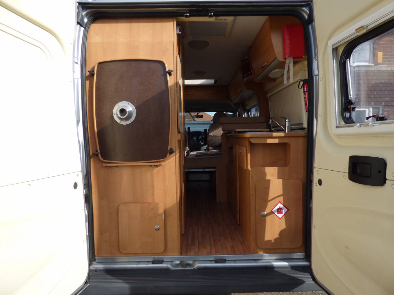 The rear doors both open and there is a wind out Fiamma awning attached. In the cab there is air conditioning and a manual gearbox with 120bhp engine. The vehicle benefots from Remis style blinds and an alarm and mobiliser.
