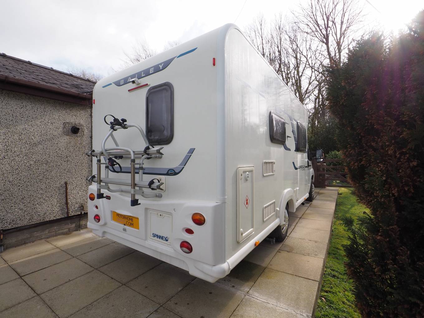 The Whale heating and hot water system runs off gas or 230v electric. A 12v leisure battery provides power along with the 230v electric hook-up.l. Externally there is a gas locker with the refillable Gas-Lo twin bottle system fitted; a real must have for European travel. A two bike, bike carrier is fitted to the rear.