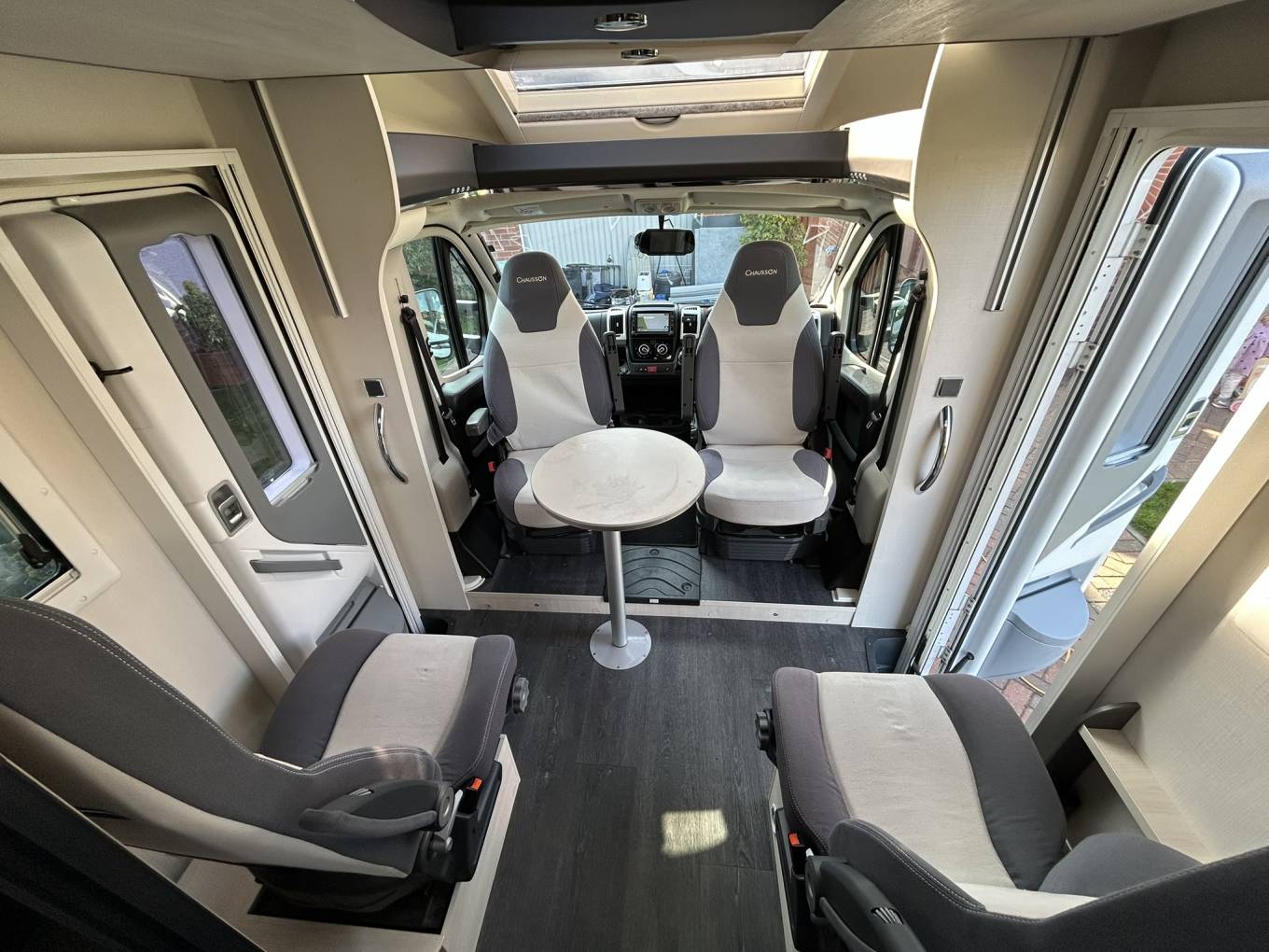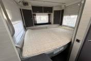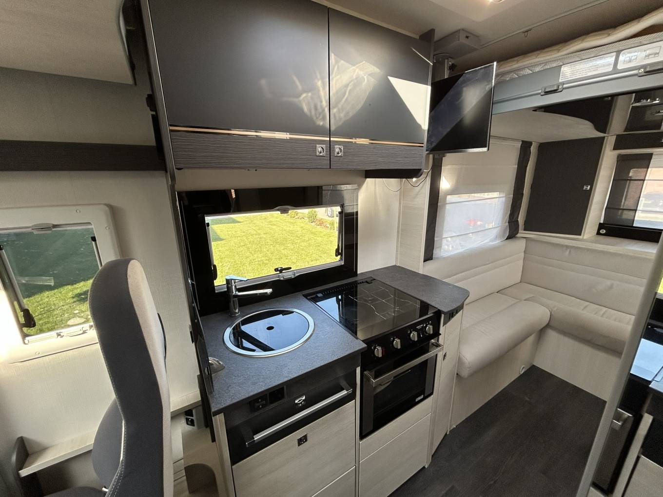 This ingenious twin-habitation-door design offers unparalleled access flexibility, while the spacious U-shaped lounge creates the perfect social hub. At bedtime, simply lower the two electric drop-down beds at the touch of a button for effortless comfort. The Webasto diesel heating system ensures year-round cosiness, complemented by the wind-out awning with its innovative 5-part inflatable windbreaker for outdoor living.