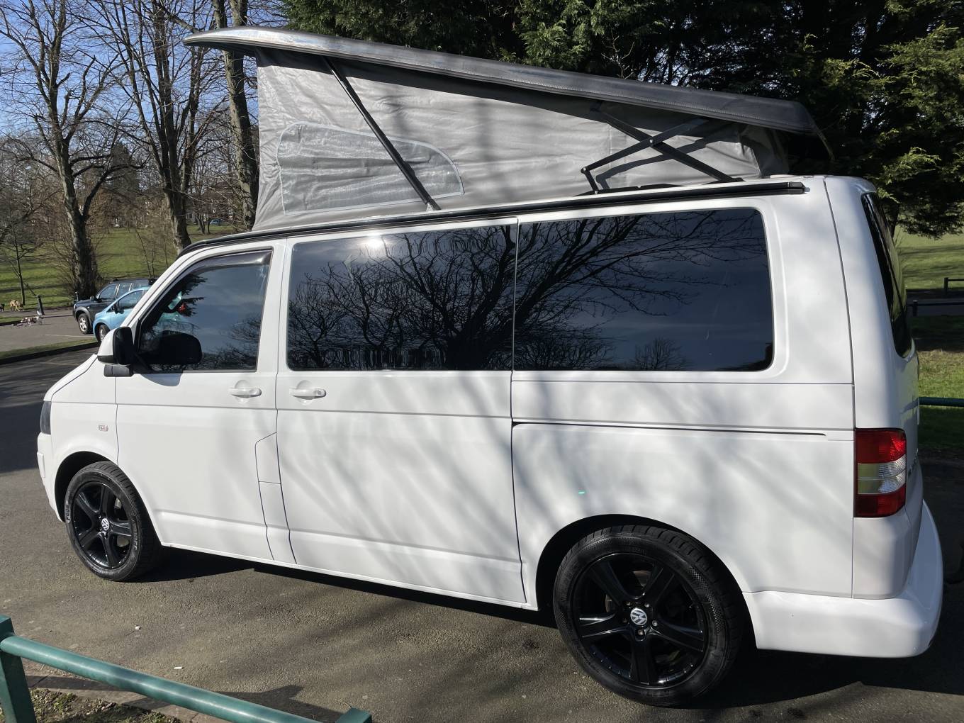 If you are looking for a Summer ready Campervan ready to take you away for holidays, to go to festivals, to explore the world having fun and adventures then look at this. Looking great in white with a really modern looking interior this campervan has everything you would want to get away. With plenty of room in the pop top roof, solar panel so that you can go off grid, a Webasto night heater to take the chill off and cab air conditioning to keep you cool. A generous easy to use rock and roll bed along with captains front passenger seat give this camper all the versatility you would need. This well equipped T5 highline T28 SWB campervan had the timing belt replaced in November 2024.