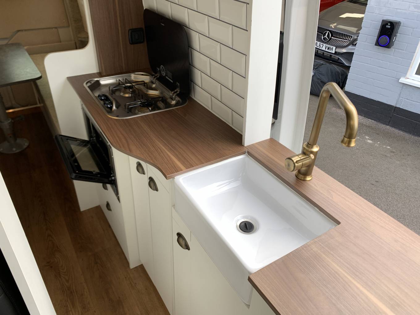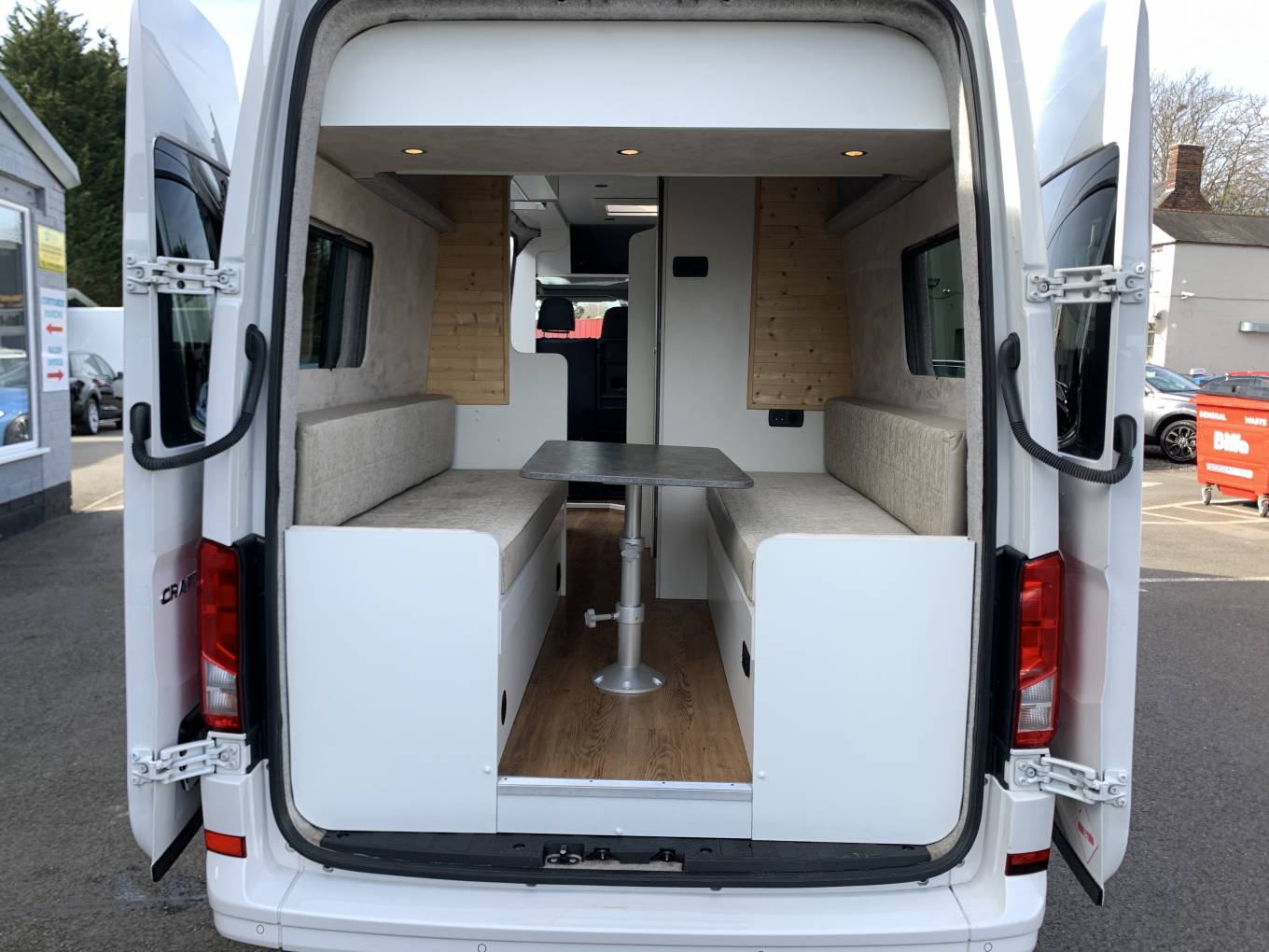 A good example of a professionally converted Crafter from new, with just the one owner, its bespoke design will appeal to couples with young children especially with its over lounge double berth within the Summit roof pod. Below a large double or 2 six foot long singles, a small single berth is also available in the forward lounge by way of the rock and roll bench seat.