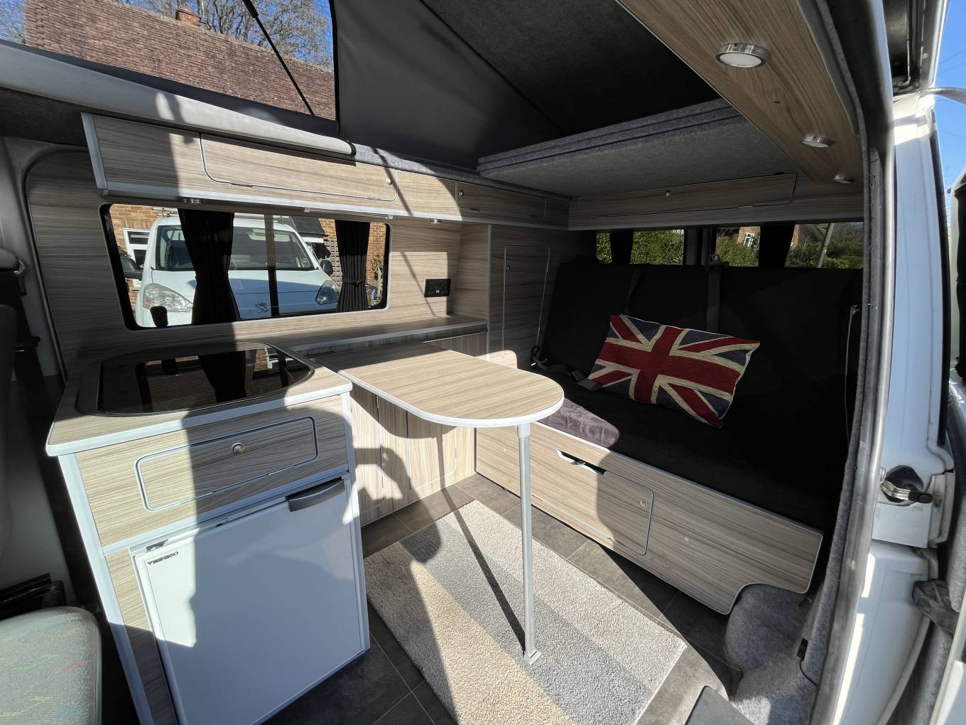 As a JCS (based in Bristol) camper conversion, it includes a pop-top , a rock-and-roll bed, a