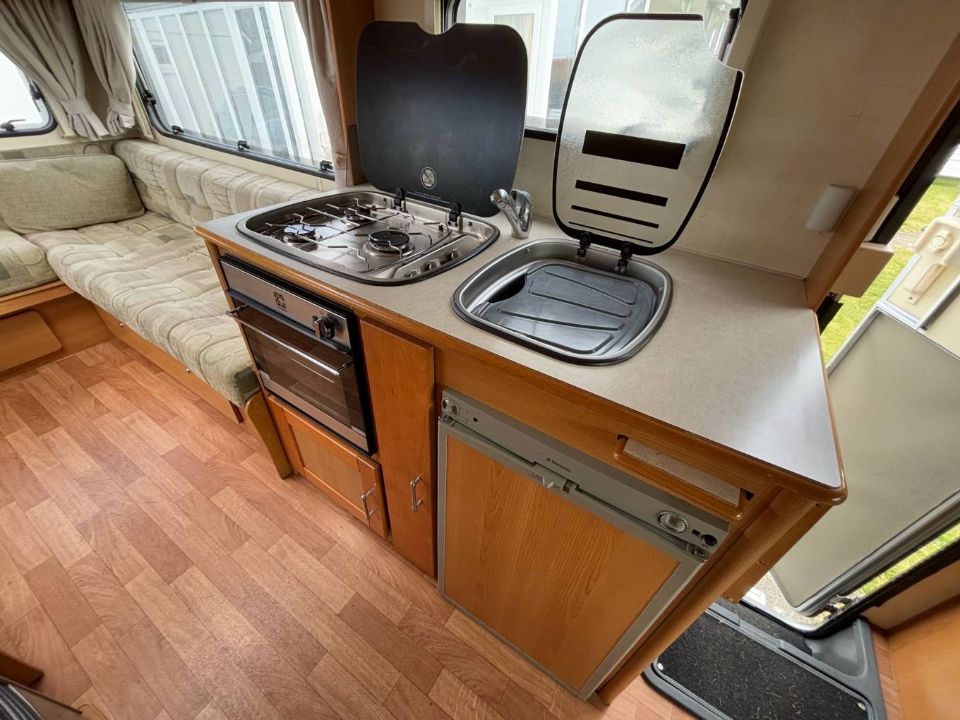 hob, a 3 way fridge with freezer box, washbasin, and grill/oven combi. With the
