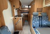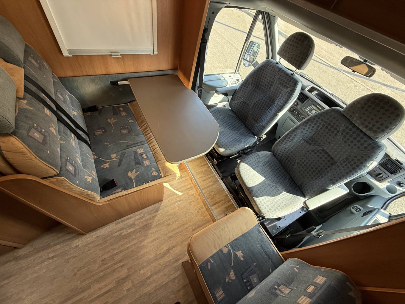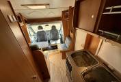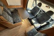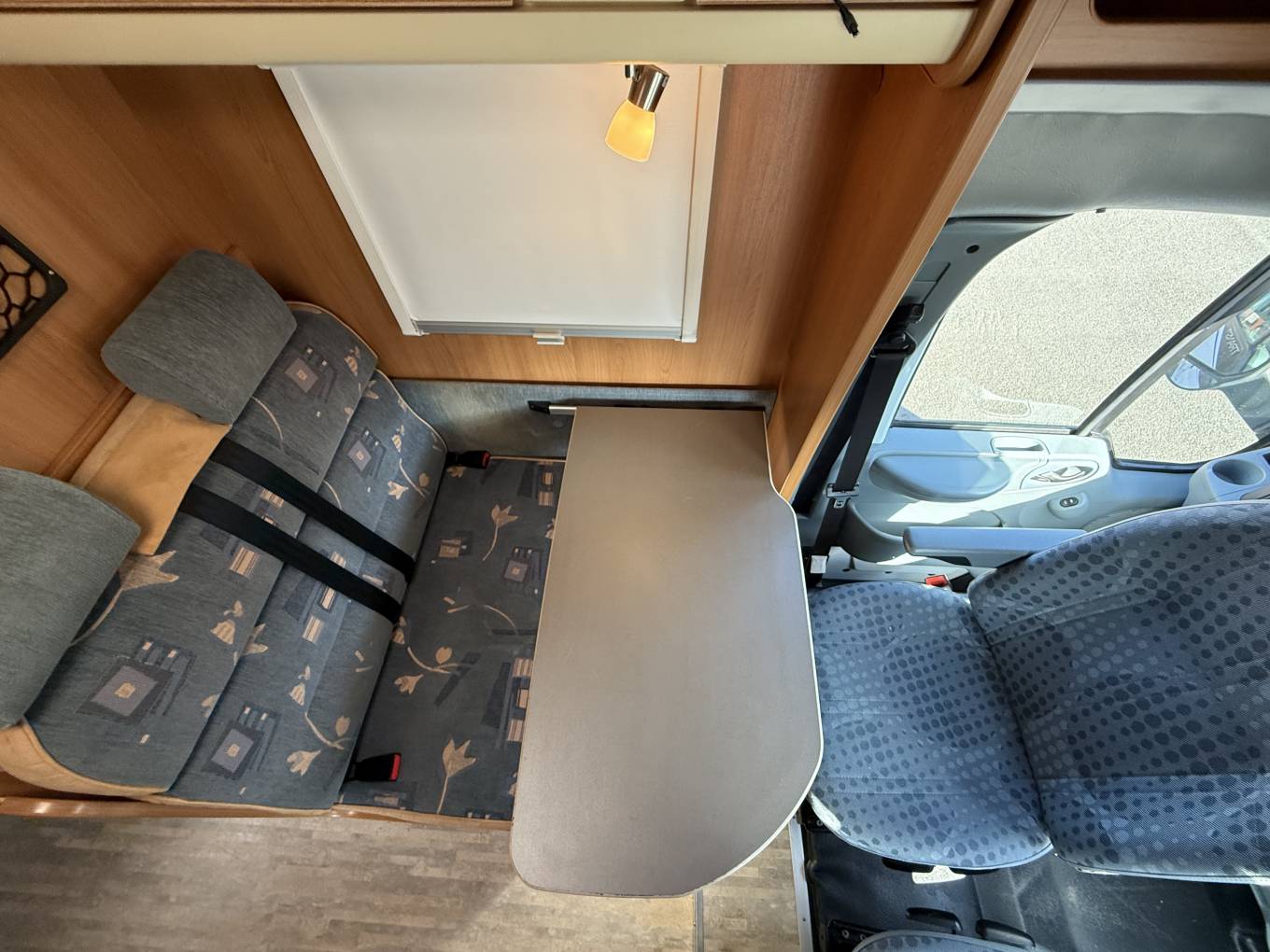On entering via the Habitation door, in front of you and to your right is the Lounge and dining area where both Cab Chairs swivel round to face the Twin forward facing Belted Seats with a side mounted Dining Table in the centre.