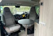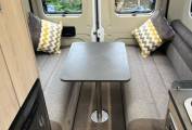 Towards the front of the camper are the x2 swivel seats, which offer an additional area for seating, there’s also x2 tables which go in front of the swivel seats, or in between the rear sofas.