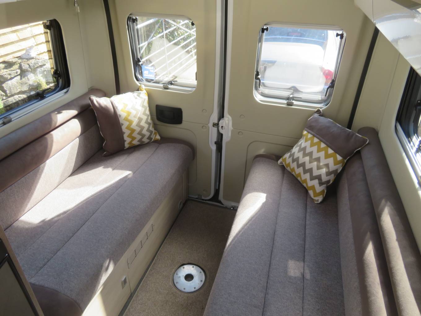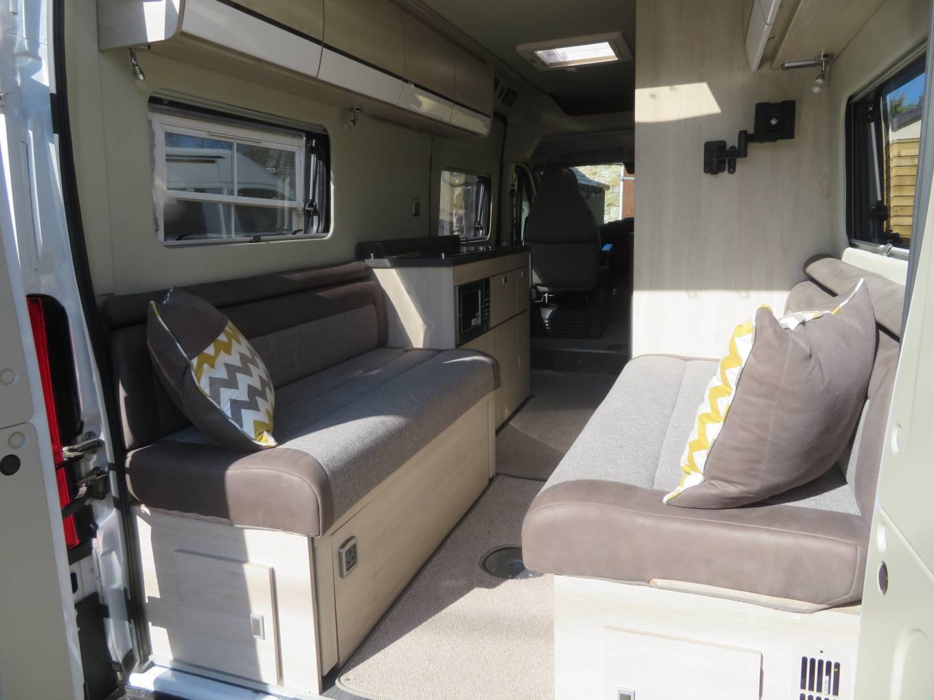 Towards the rear of the camper is the versatile twin sofas that are perfect for relaxing after a long day which make into a double bed for sleeping.