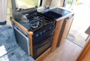 This model remains popular as it is small enough for country roads and supermarket car parks yet still has all the mod cons you will need for your holiday in comport. Some of the features on board include. Rear washroom, with cassette loo, fold away wash basin and shower, end kitchen with oven, hob and grill, sink and drainer, clever fold down work tops provide more room to prepare.