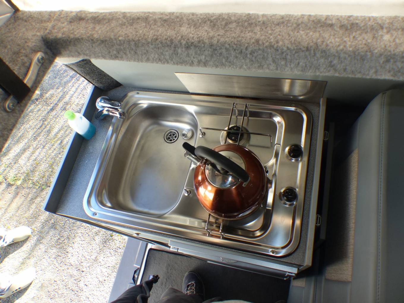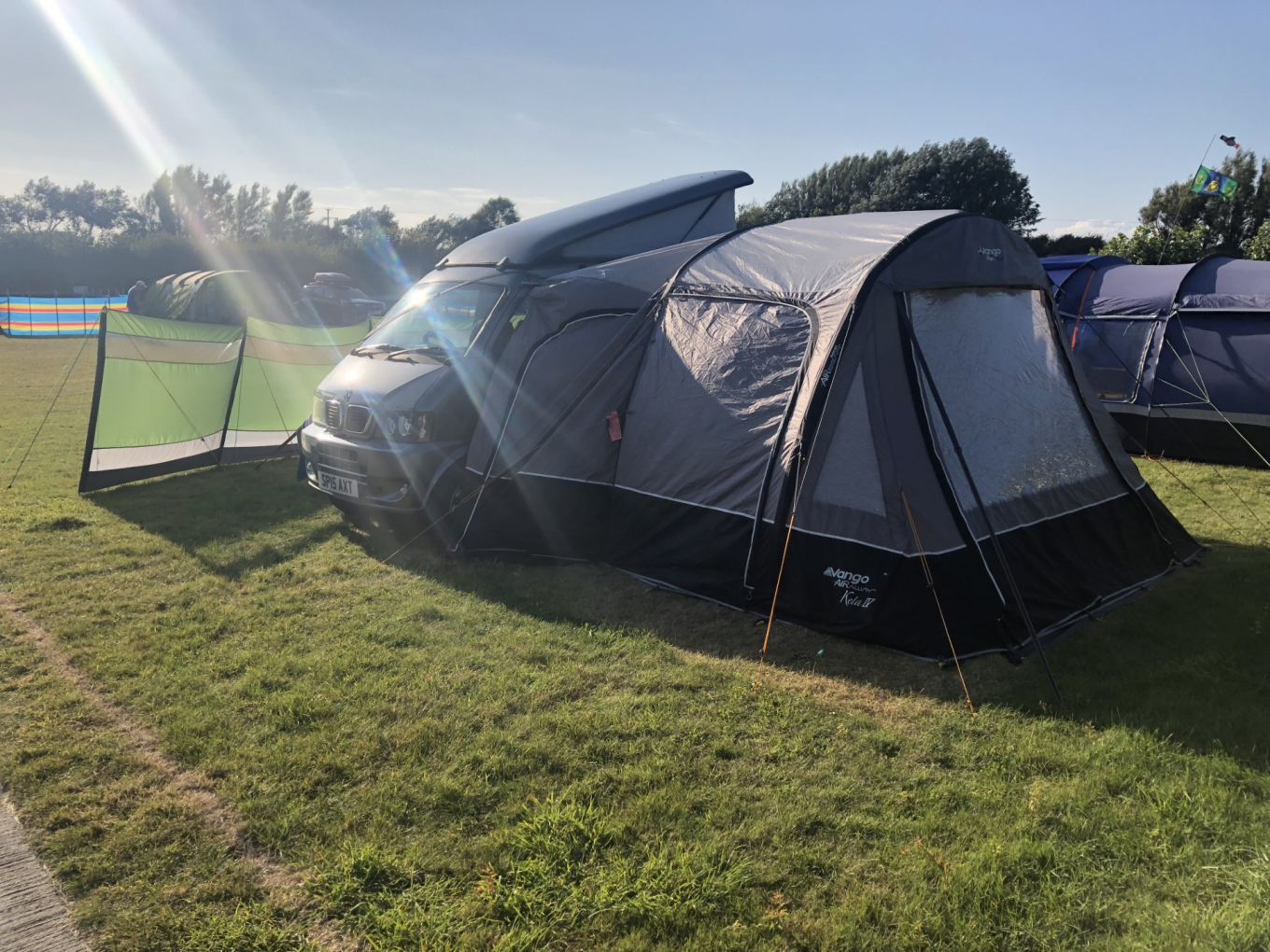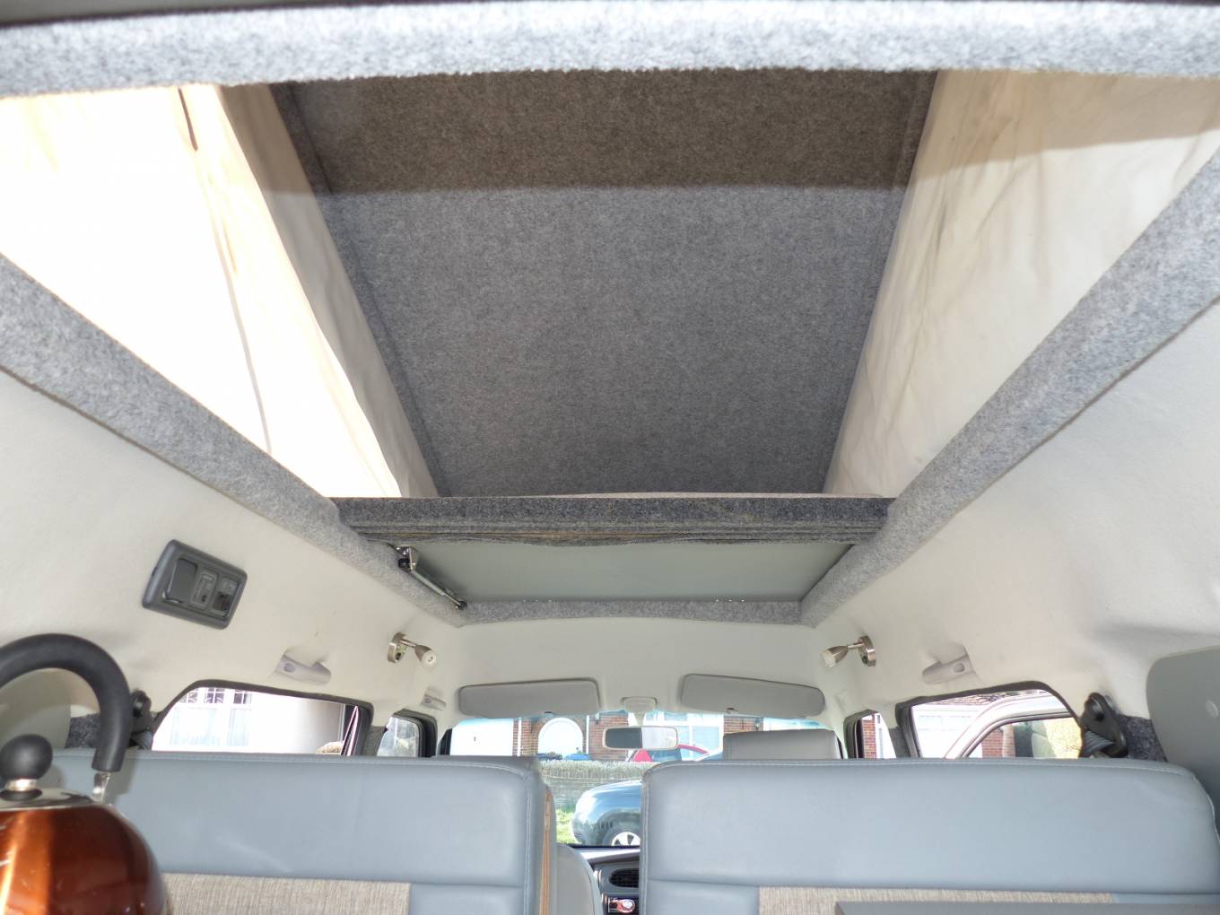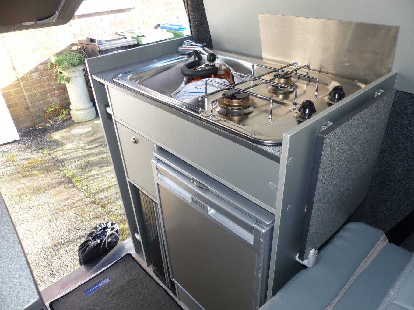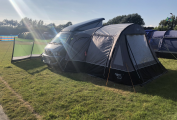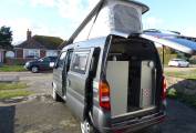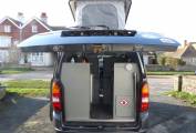 The van has a pop top with boards so that it could provide a small bedroom for children. In the van itself we have all the facilities needed for a great trip such as grill, hob, sink, drainer, trauma heating, portable cassette loo and dinette area that converts to good sized single beds. There is also roof space big enough for a childs bed.