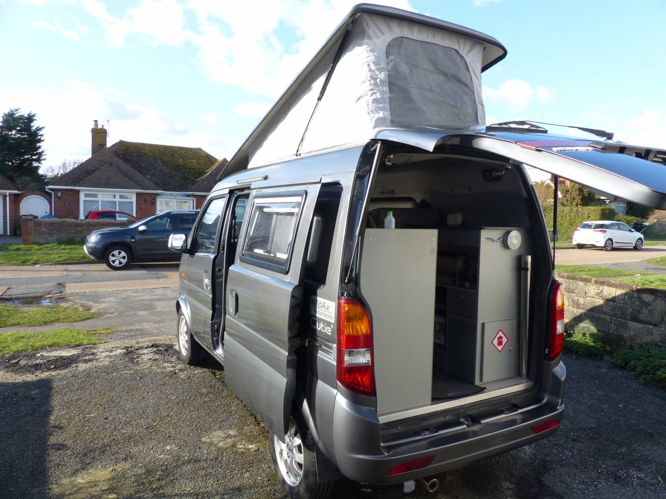 This beautiful compact Cutie 4 camper van by wildax, has only 7200 miles on the clock and with a full service history would make a fantastic starter vehicle for the new motorhomer. This is a 2015 model converted by professional converter Wildax is based on the DFSK 1300 cc petrol engine. Both cam belt and water pump were changed in 2022 and the service documents are all up to date. Please note this vehicle is ULEZ compliant.