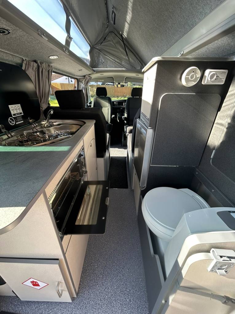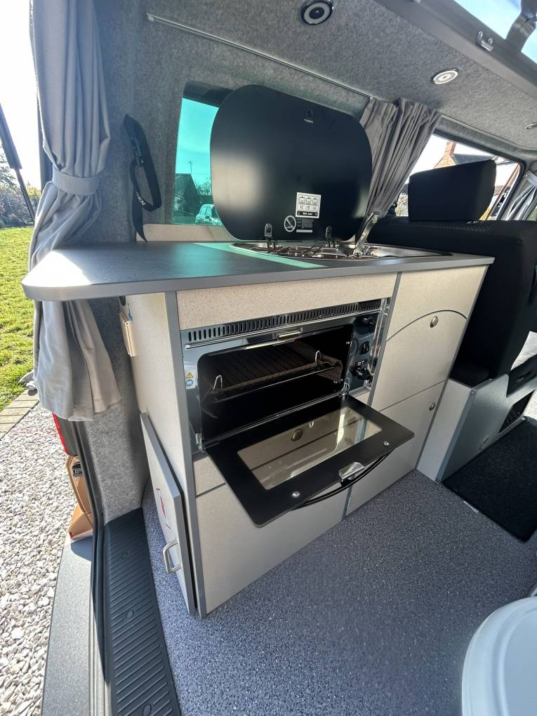 3-ring burner hob, grill, compressor fridge, sink, onboard fresh & wastewater