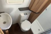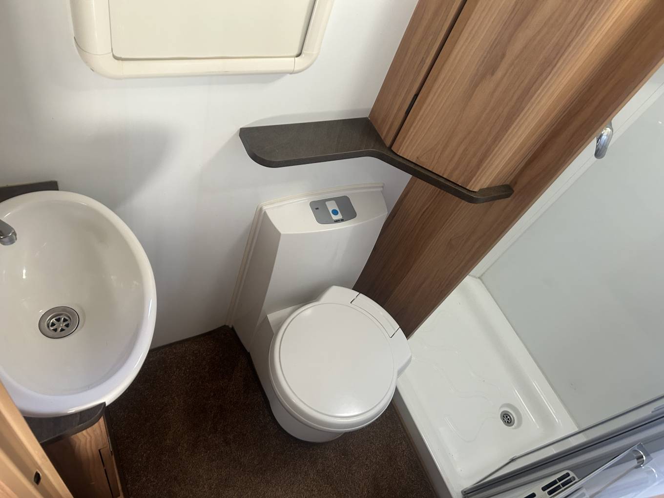 Moving to the back of the motorhome you have an extremely comfortable fix French bed, the ideal place for a great nights sleep. This also lifts up to give lots of storage space. The 745 also has good sized washroom with features a Thetford flush cassette toilet, sink and separate shower. The motorhome has the excellent Alde wet heating system.