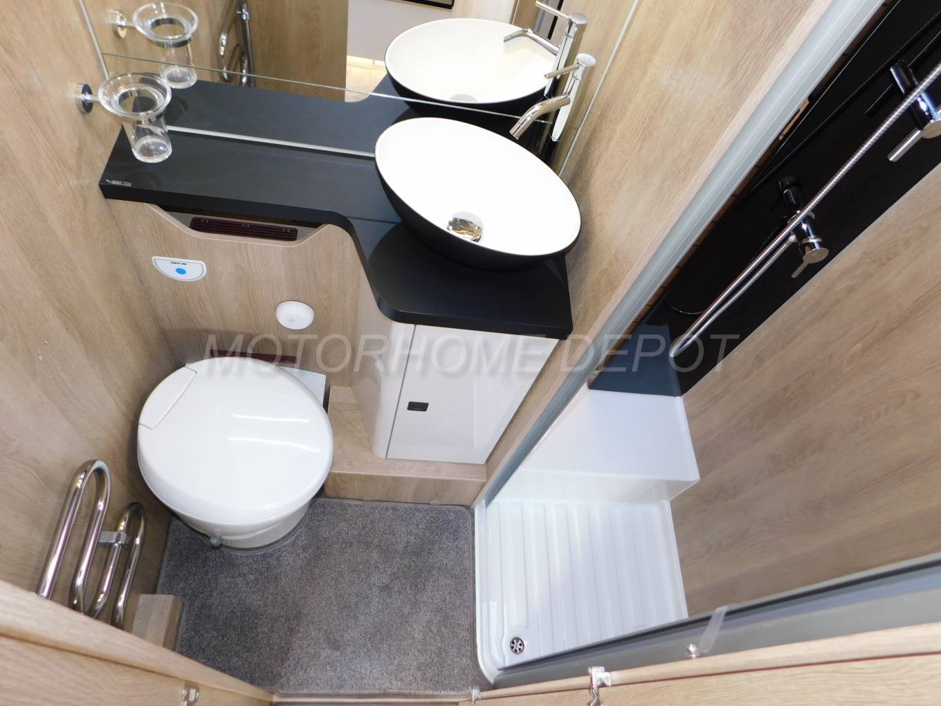 cabinet above, a Thetford cassette swivelling toilet with electric flush, plus