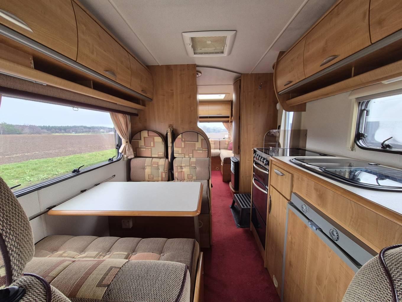 bed, blinds and curtains, rear lounge also converts in to a King size bed.