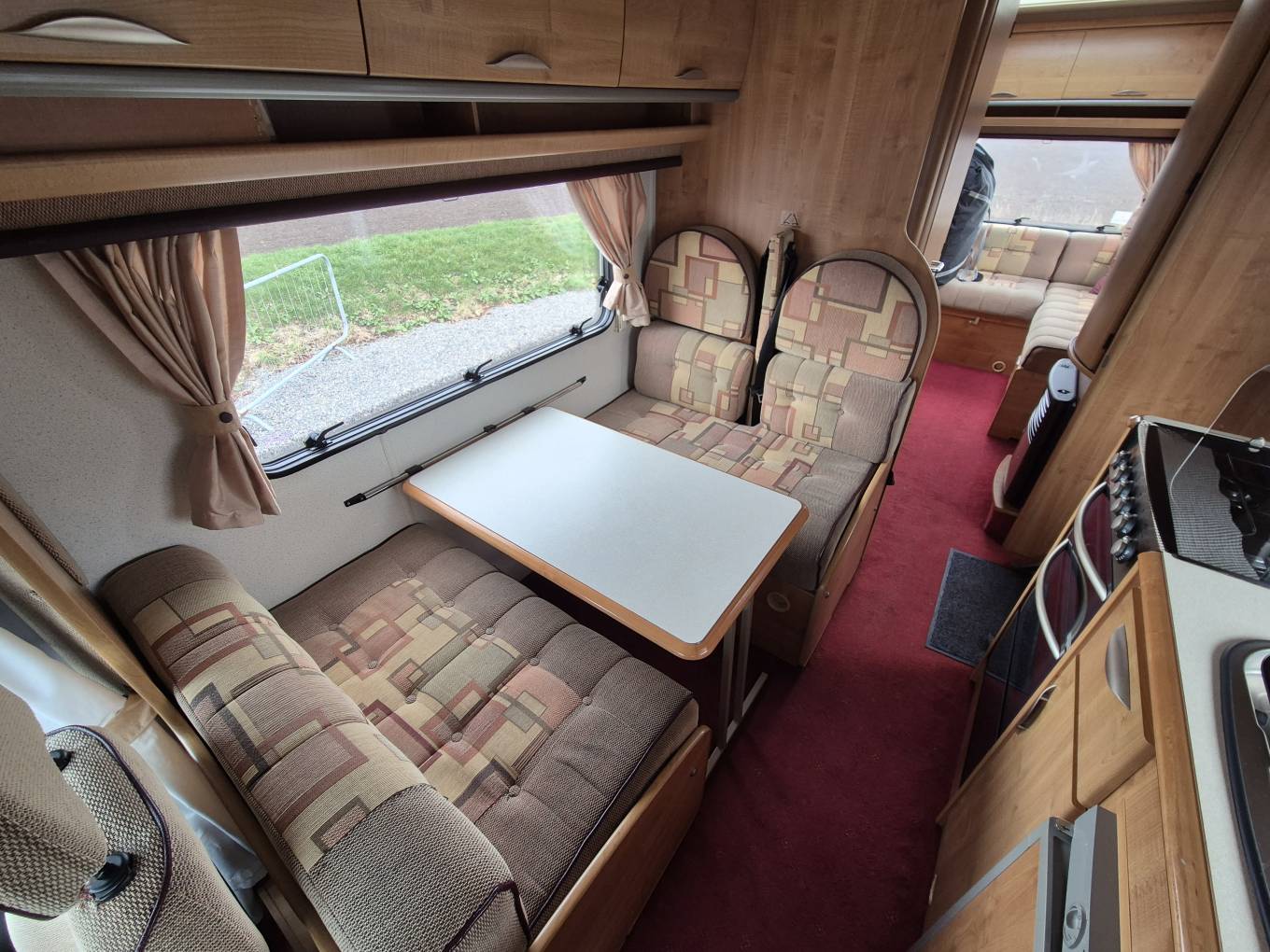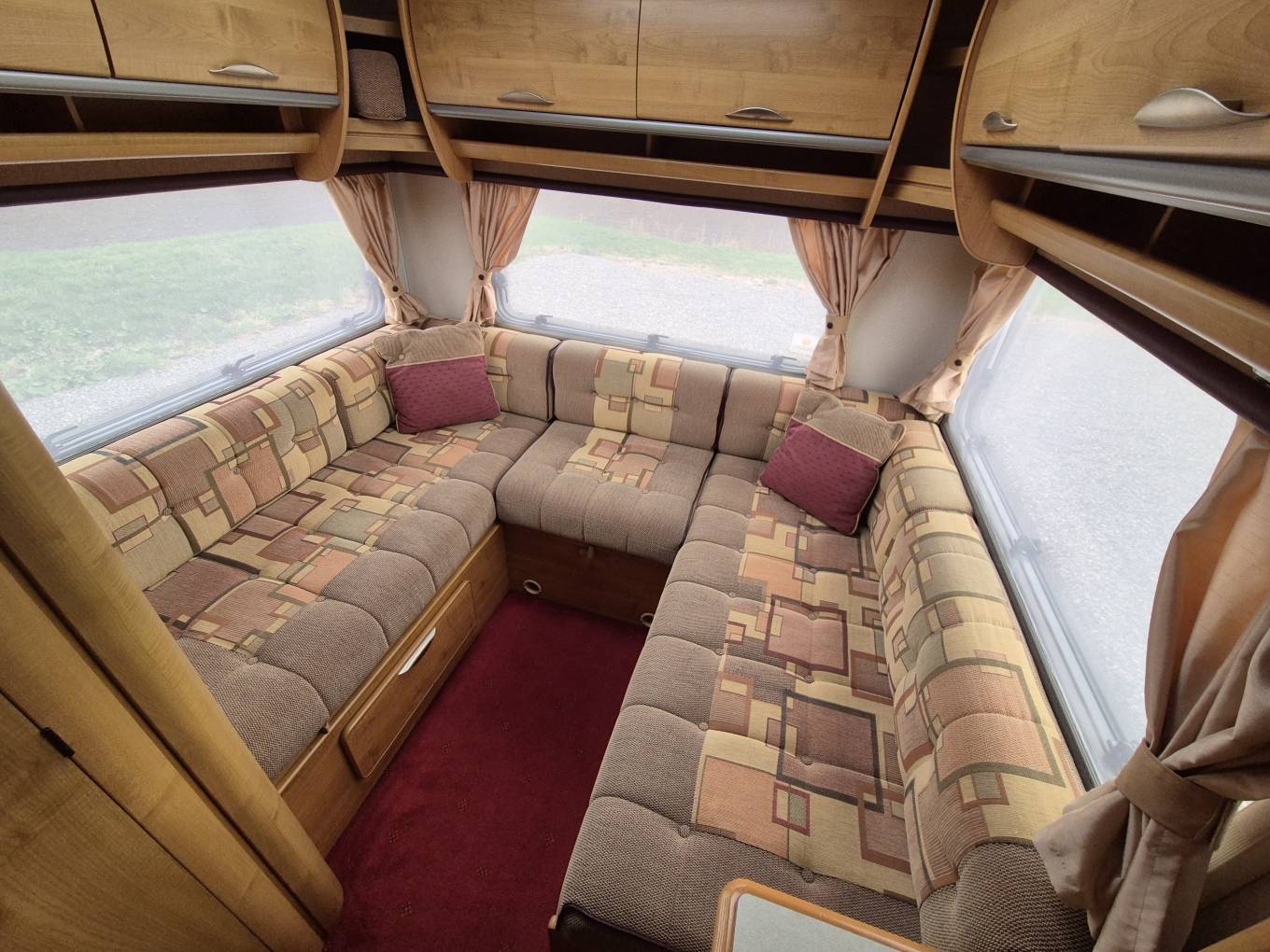 cab double bed with curtains, The lounge area converts into a good size double
