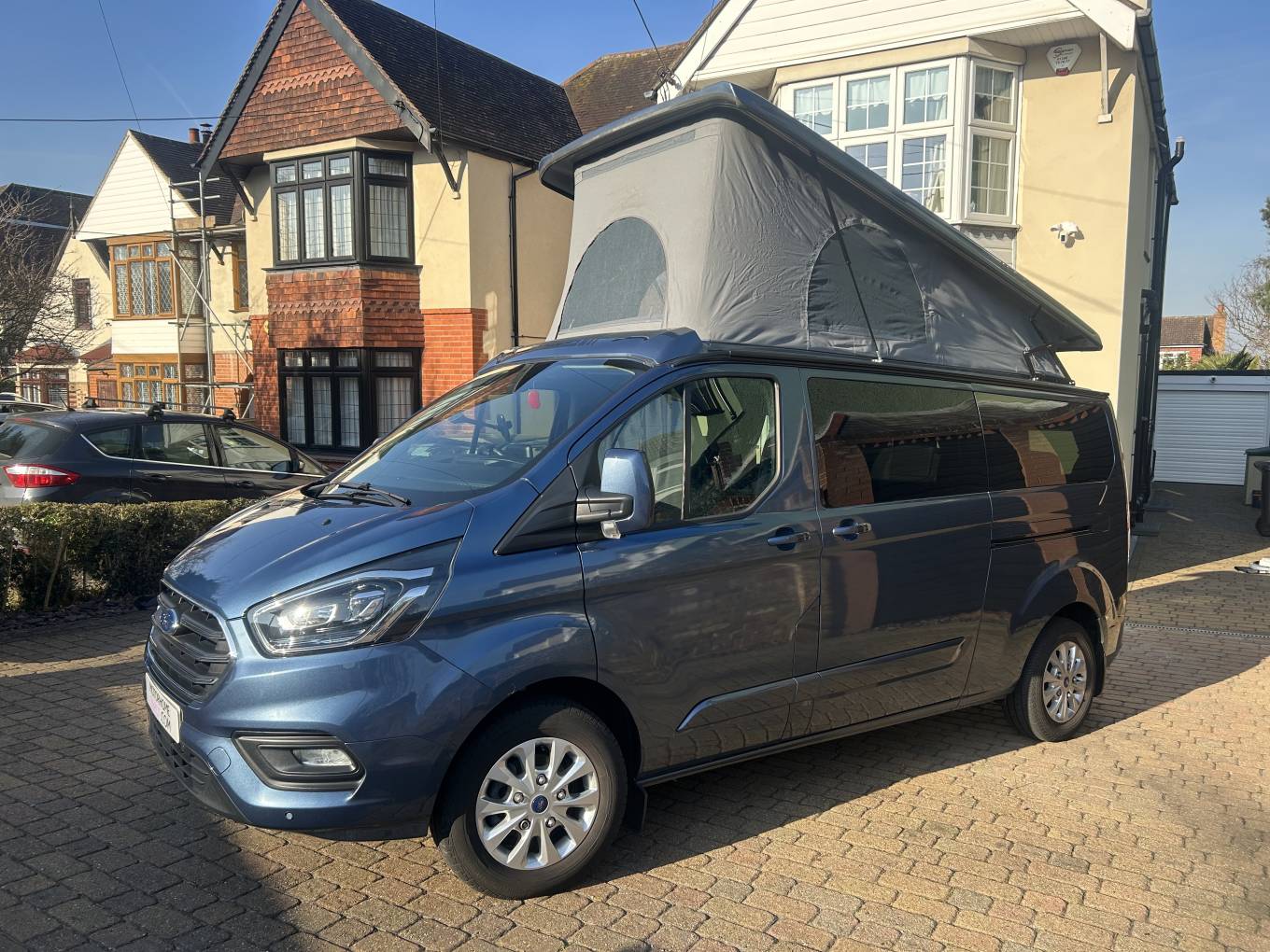 This camper is built on a LWB Ford Transit Custom 300 Limited with lots of special features. It has an economical 2l engine with 6 speed manual gearbox and 130 bhp, giving you all the power you need. It comes with cab air conditioning, adaptive cruise control, speed limiter, Driver Assist, pre collision assist, Hill Start assist, Traffic sign recognition, lane keeping system, Driver Alert and Traction Control. It also has a reversing camera, front and back sensors and even has heated front seats. To complete the package it also has digital control panel giving you access to Apple Car Play and Android Car Play. As you can imagine, driving this vehicle is an absolute joy.