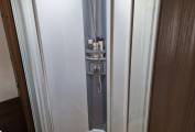 Upon entering the vehicle you are greeted with a spacious, bright and luxurious ivory leather seated area. A large adult-sized double bed drops over the cab, whilst the kitchen area is fully equipped with an Oven, Grill, Microwave, 3 gas burners, sink with mixer tap, plenty of storage space and a full-sized fridge with a separate freezer. Towards the rear of the vehicle the beautiful elevated island bed is complete with a unique Custom-Made mattress, Dometic Air Con, Alde Wet Heating system, stunning bespoke lights and a privacy screen. Either side of the rear bedroom we have a luxurious bathroom and a separate shower room with divider. Throughout the motorhome there is ample storage, with lockable cabinets and drawers in abundance. To keep you going whilst off-grid this vehicle is fitted with two solar panels. The rear garage is large enough for any type of outdoor gear, bicycles or even a Motorcycle.
