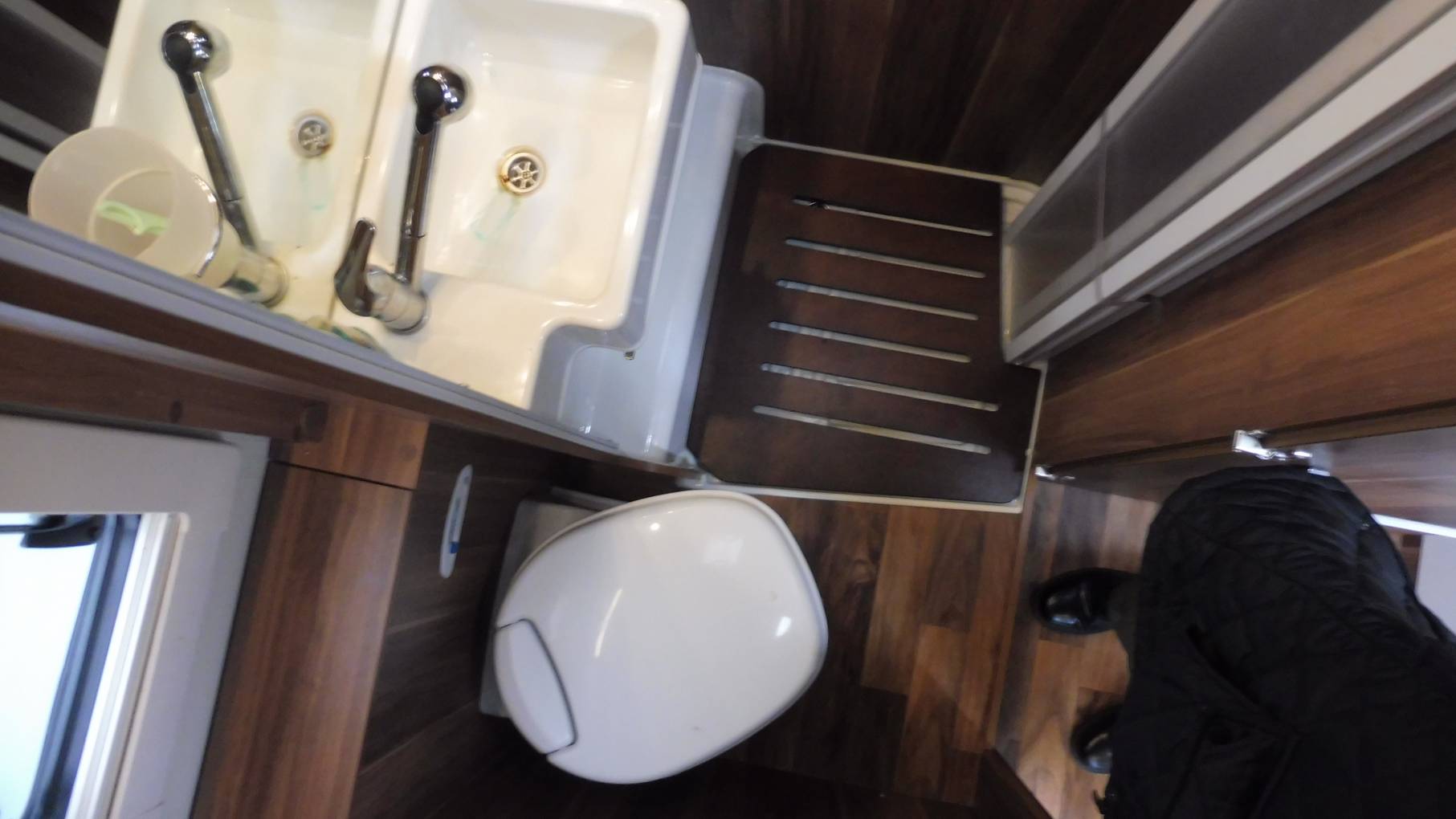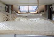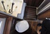 At night this area converts to a large double bed, although the side sofas are long enough to be used as singles. In addition there is an electric drop-down bed over the dinette, which along with the dinette seating allows sleeping accommodation for six people. Internal furnishings are in good condition.