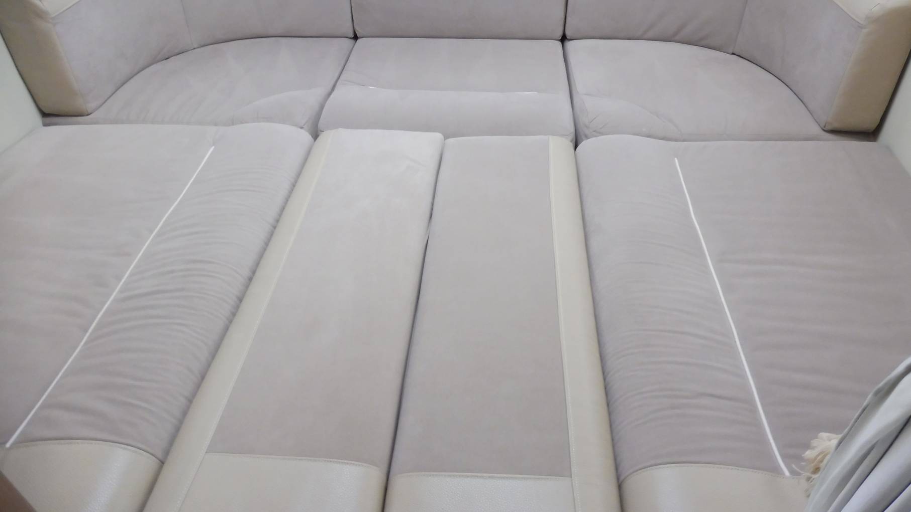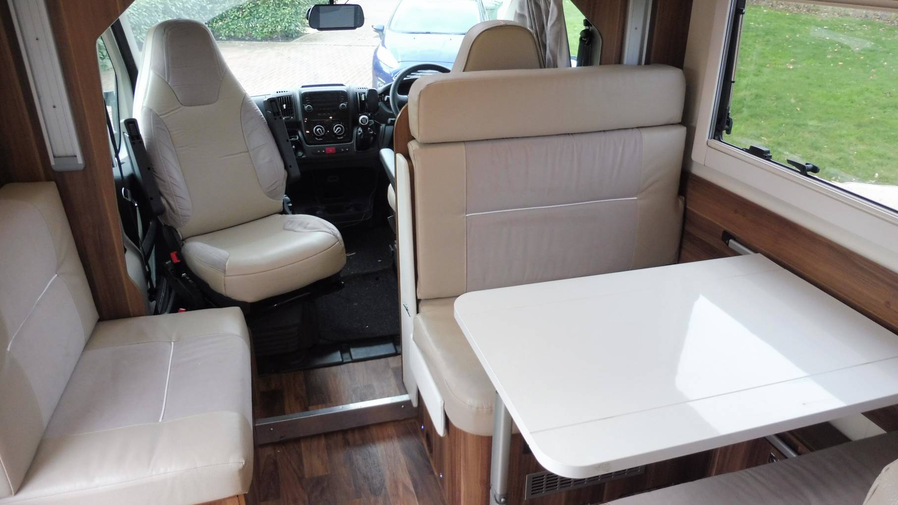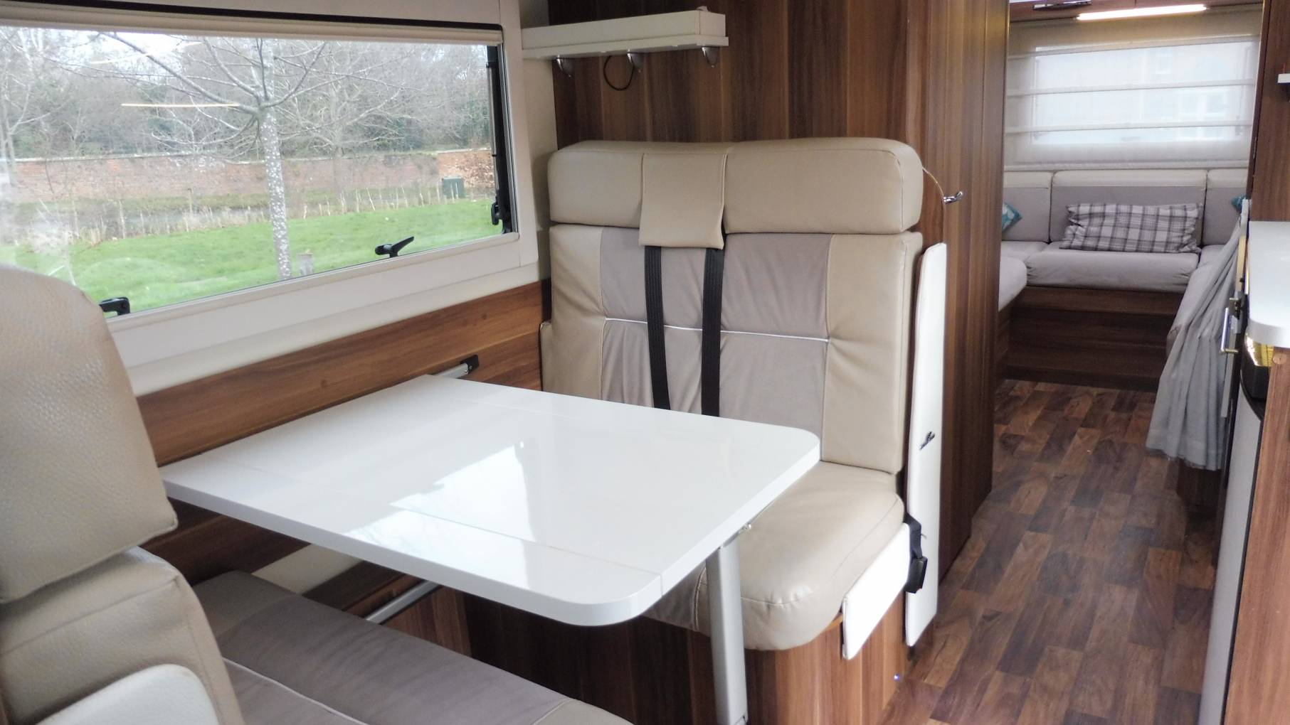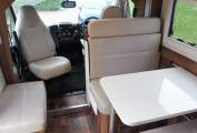 Entering the habitation door you have a double-dinette with a small bench seat opposite. With the front seats swivelled there is usable seating for 7 people. The table has an extension so dining is possible for 6 comfortably.