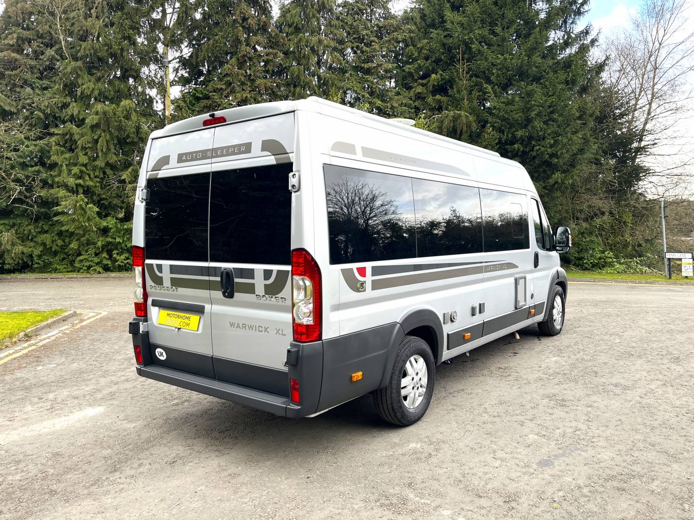 The WARWICK XL outsells all the other layouts and as soon as you step inside it is easy to see why….space , space and more space. No claustrophobic feeling here at all. The end lounge has 2 long bench seats ( measuring over 6 feet on each side ) , rear opening “ patio “ doors as well as windows all around . It’s like a hotel room with panoramic sea view !!
