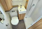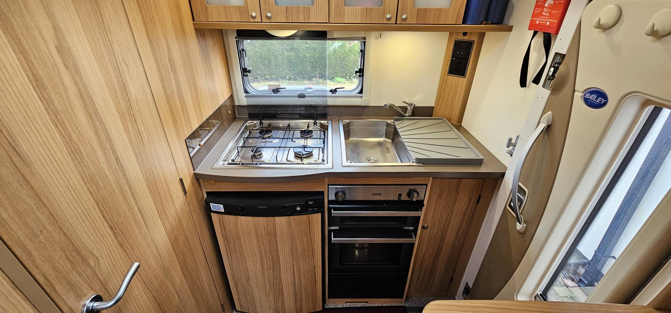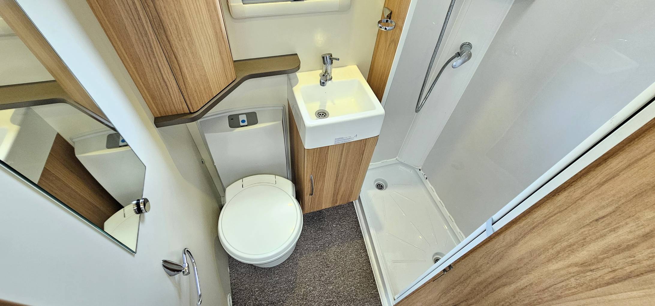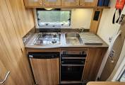 Inside, the spacious lounge area converts into a large, comfortable double bed. The kitchen is fully equipped with a 4-burner hob, oven, grill, microwave, and a fridge with a freezer compartment. The washroom includes a separate shower, toilet, and sink, with ample storage for toiletries. With a 100-litre fresh water tank and a 100-litre waste water tank, this motorhome is perfectly suited for extended trips.