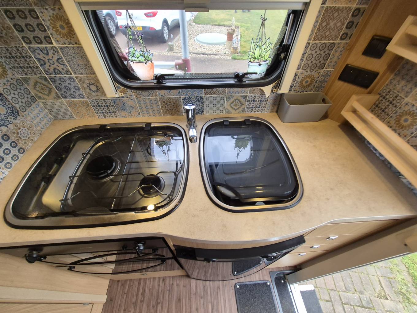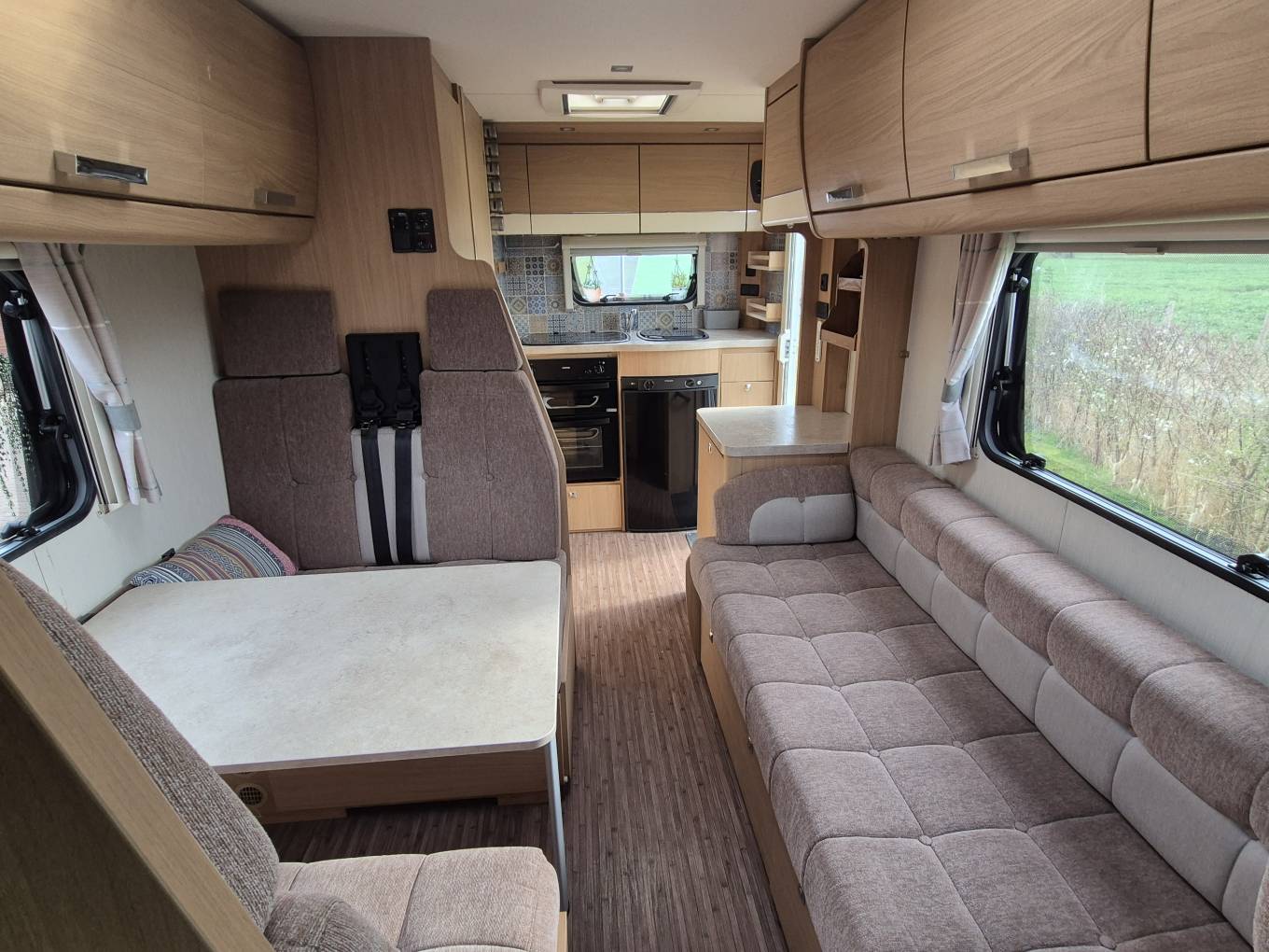 The Elddis Autoquest 130 is one of the most popular motorhomes ever built and it is easy to see why. Offering great value for money, this motorhome is only 6.17 m in length meaning that it is easy to drive and park but still offers comfortable living space for a family. The layout inside consists of an end kitchen which is equipped with a gas oven and grill and a 3 gas burner hob . There is a 3 way fridge with an ice box and plenty of cupboard and locker space to store your kitchen essentials. Next to the kitchen is a storage cupboard with a flat surface which is ideal for using as a food preparation area. The washroom has a shower, a Thetford cassette toilet, a fold away wash basin with a mixer tap and a bathroom cabinet for your toiletries, with a roof light that floods the washroom with daylight. Perhaps the standout feature of this motorhome is the spacious and airy lounge which is a lovely area for you and the family to relax in, with even more storage in the overhead lockers. The nearside has a long side facing sofa offering you the opportunity to sprawl out after a busy day out and at bedtime the sofa is long enough to be used as a single bed. On the offside there are forward facing and rear facing 2 seater sofas with the forward facing sofa having 2 seat additional seat belts. The 2 sofas combine to create a double bed and the final 2 sleeping berths are in the overcab bed which can be accessed via a ladder. Based on the excellent Peugeot Boxer chassis this Elddis has the powerful 2.2 litre engine with a 6 speed manual gearbox so you will have plenty of power to climb hills as and when you need to. The motorhome has some nice features including a solar panel to keep your leisure battery topped up, a wind out awning, bike rack and tow bar. To see a more extensive file of photos and a walk round video please call or email.