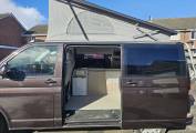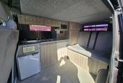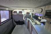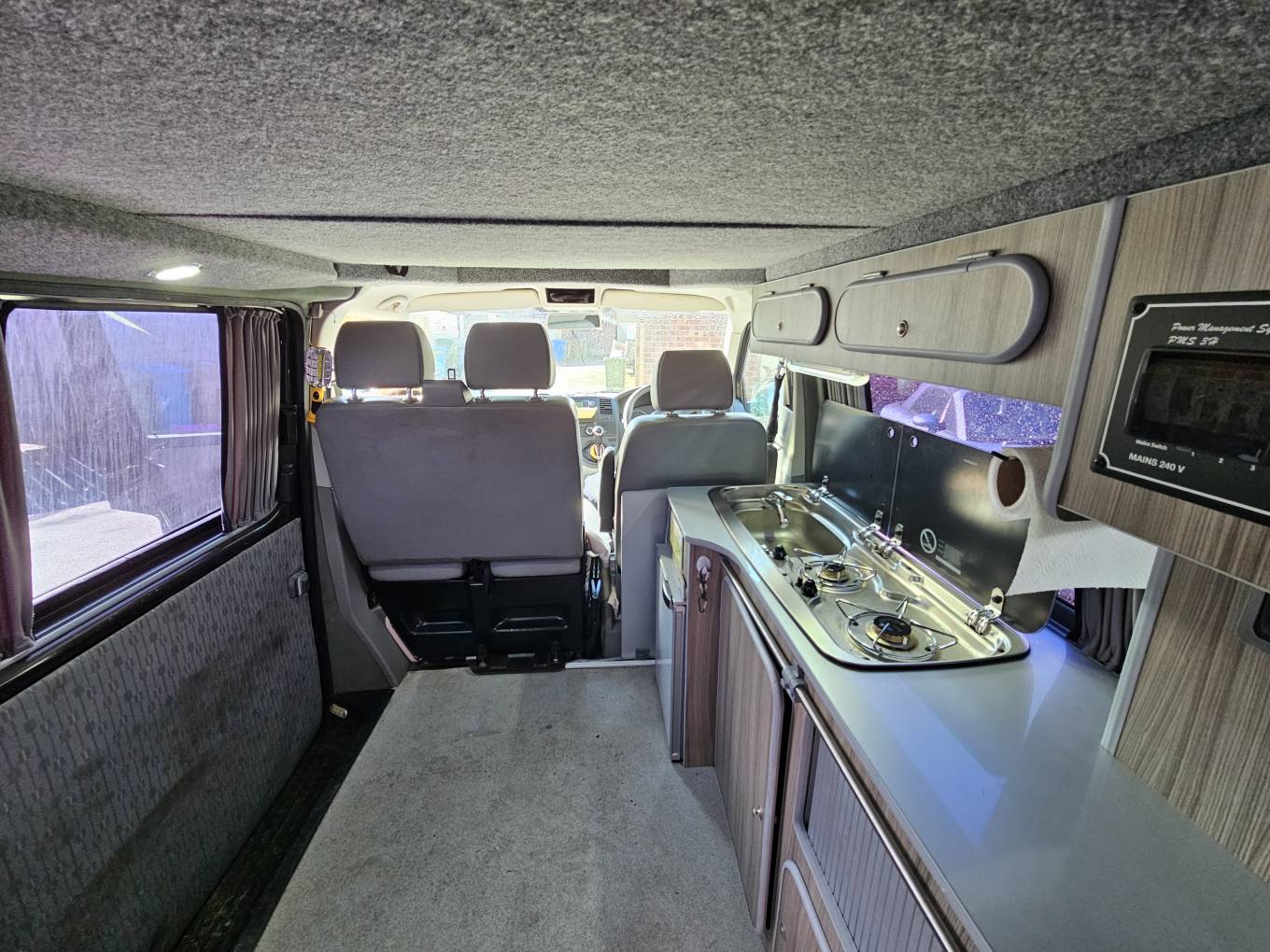 This 2L diesel engine model comes with a 5-speed manual gearbox and is fully equipped for comfortable travel. It has captain swivel seats, a pop top roof, three front belted seats, and two rear belted seats that convert into a rock and roll bed.