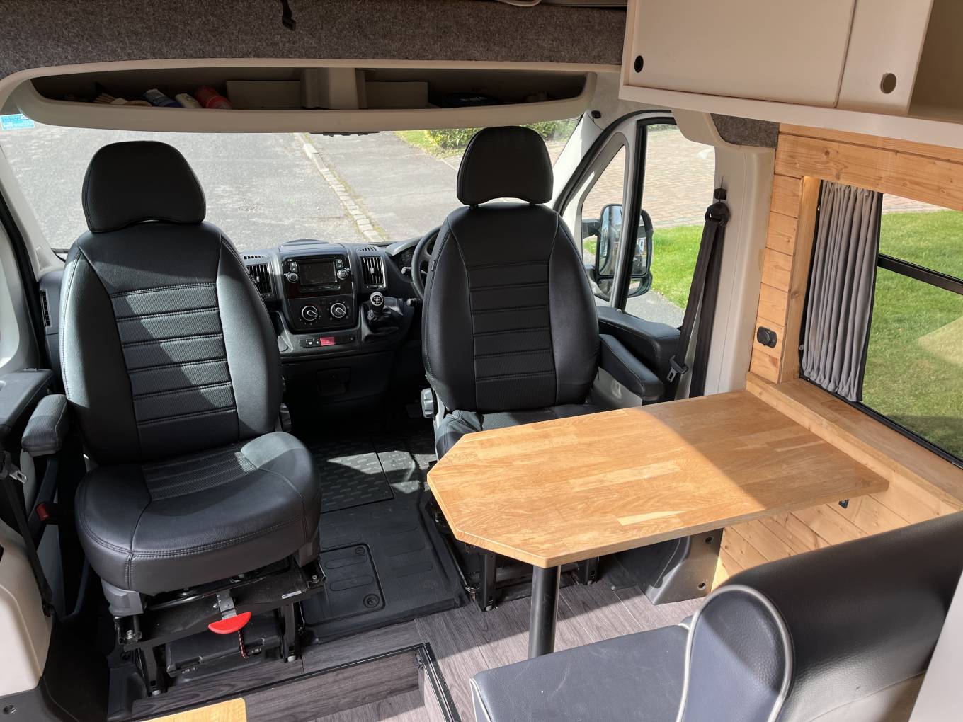 table, rear seats and both front seats that swivel so allowing 4 people to sit